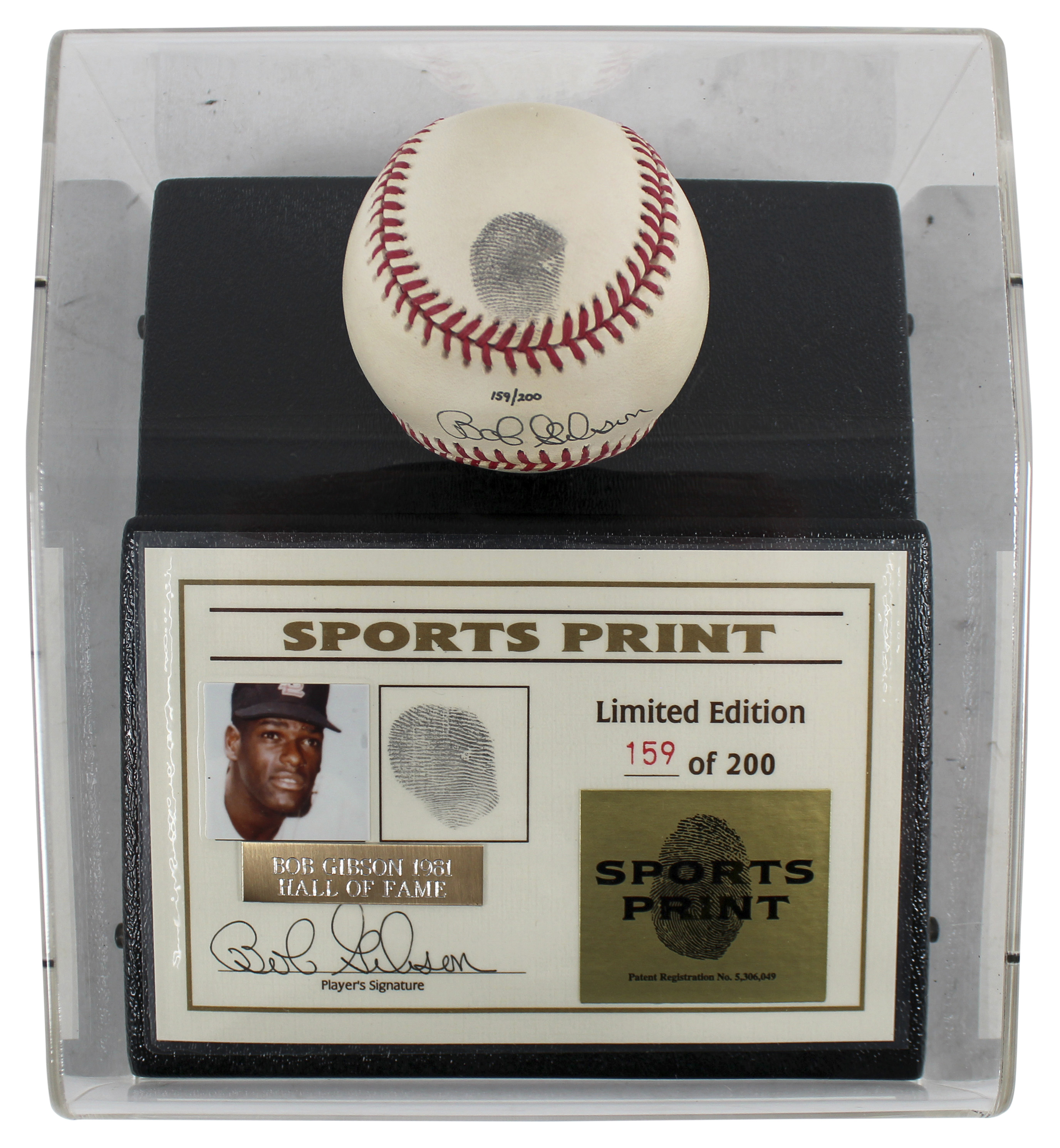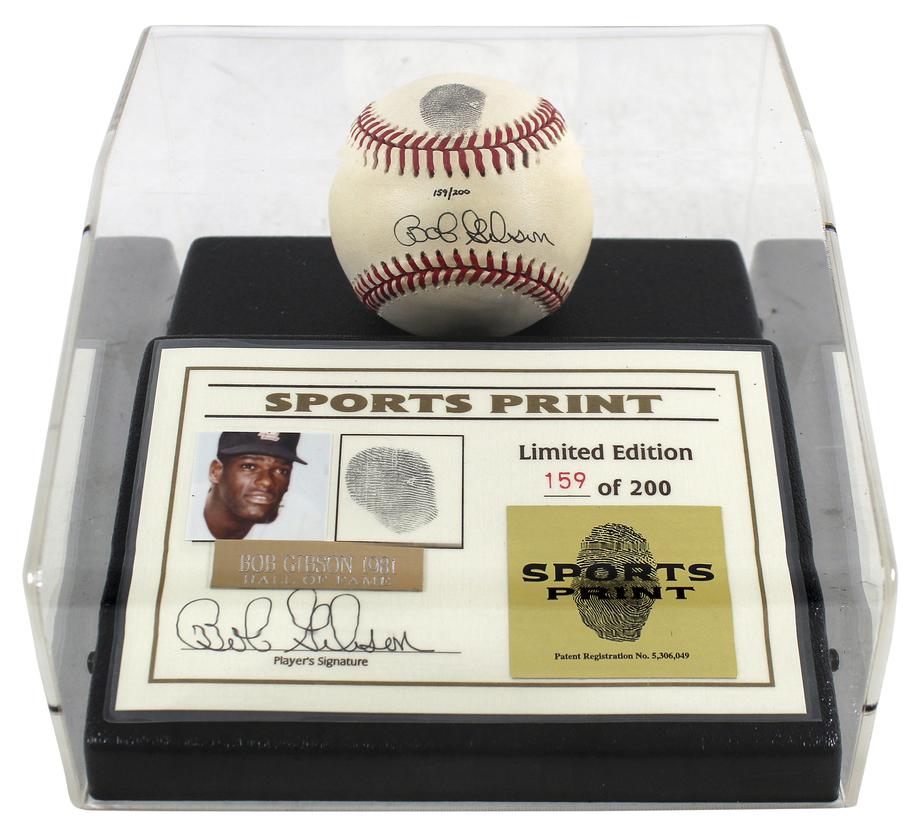 This Autographed Limited Edition Numbered To 200 w/ Display Case Thumbprint Onl Baseball has been Personally Signed by Bob Gibson of the St. Louis Cardinals. This item is 100% Authentic to include a Certificate of Authenticity (COA) / hologram by Beckett Authentication Services. We have multiples of this same item. While the photographs are representative of this item, the size, placement and strength of the signature may vary. Each item is hand signed, therefore, each autograph is unique. Each ball has a thumbprint of Bob Gibson , the photo in the case is also signed and has Bob Gibson signature, though the Beckett COA does not cover both signatures. These vintage balls all have some varying degrees of spotting and toning. We are not able to guarantee the coloring of the ball, and the number of the edition you may receive.