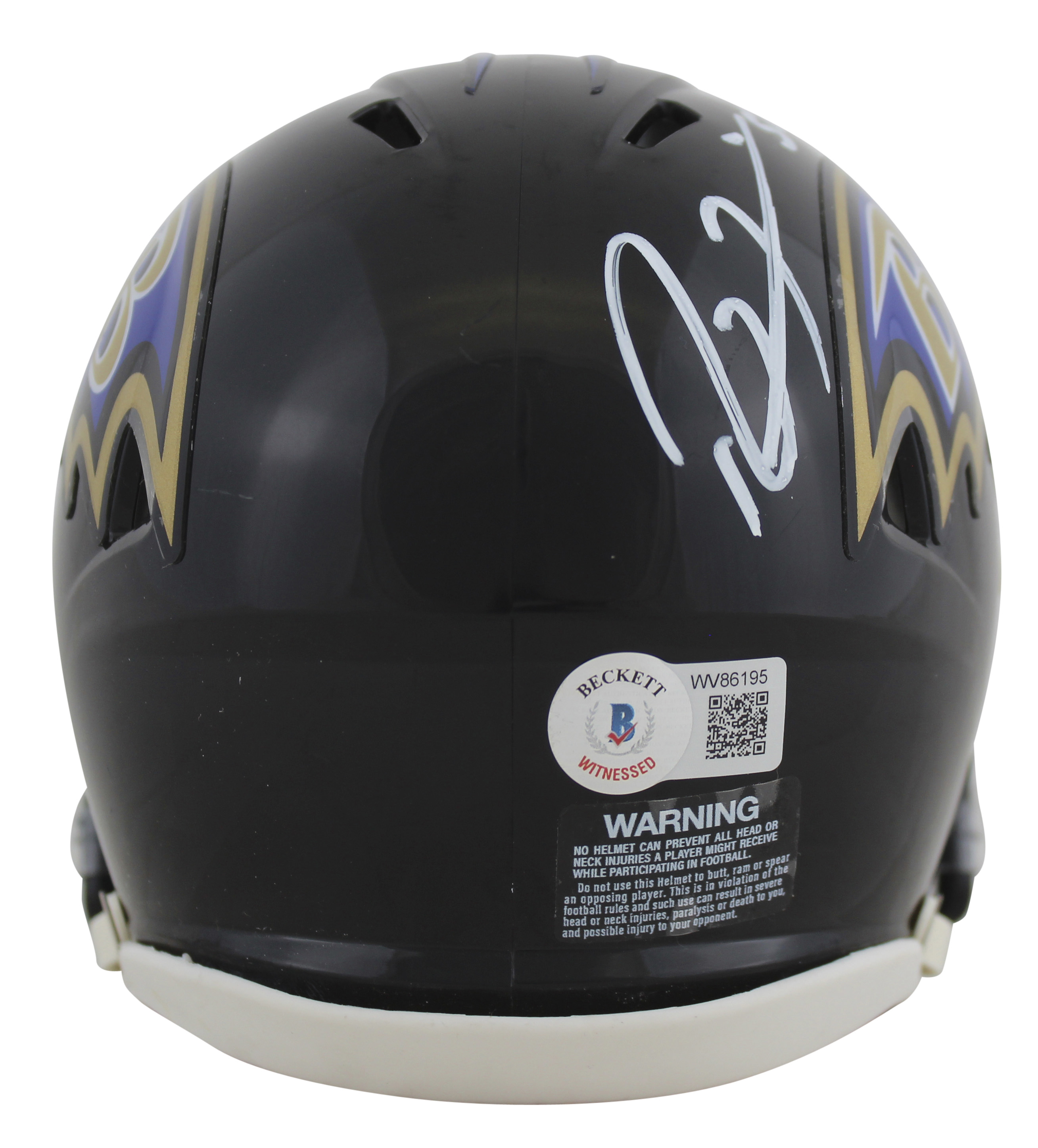 This Autographed w/ White Signature Speed Mini Helmet has been Personally Signed by Ray Lewis of the Baltimore Ravens. This item is 100% Authentic to include a hologram by Beckett Authentication Services. This item will come with the new Beckett Authentication hologram that has a scannable QR code rather than the traditional COA. If you would like to have a COA, you are welcome to reach out to Beckett for a printed certification once you receive your item. This is a BAS Witnessed Protection Program item which means a Beckett Authentication Service representative was present when this item was being signed. We conducted an autograph signing with Ray Lewis where multiples of the same item were signed. While the photographs are representative of this item, the size, placement and strength of the signature may vary. Each item is hand signed, therefore, each autograph is unique. This item can be verified through BAS Witnessed.