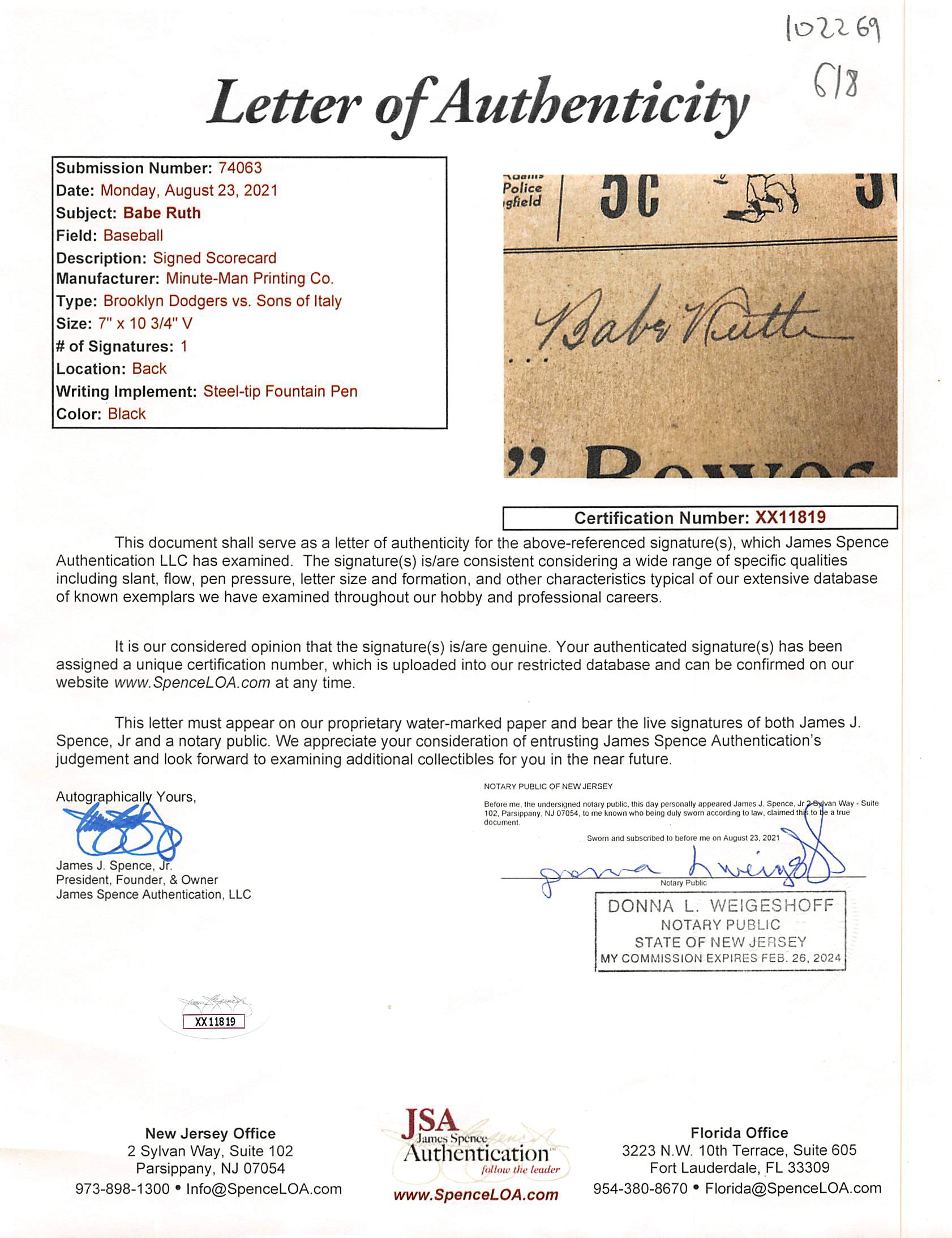 This Autographed 1.5x3.25 Cut Signature has been Personally Signed by Babe Ruth of the New York Yankees. This item is 100% Authentic, it comes slabbed and authenticated by Beckett Authentication Services. The authenticity can be verified on Beckett Authentication Services website.
