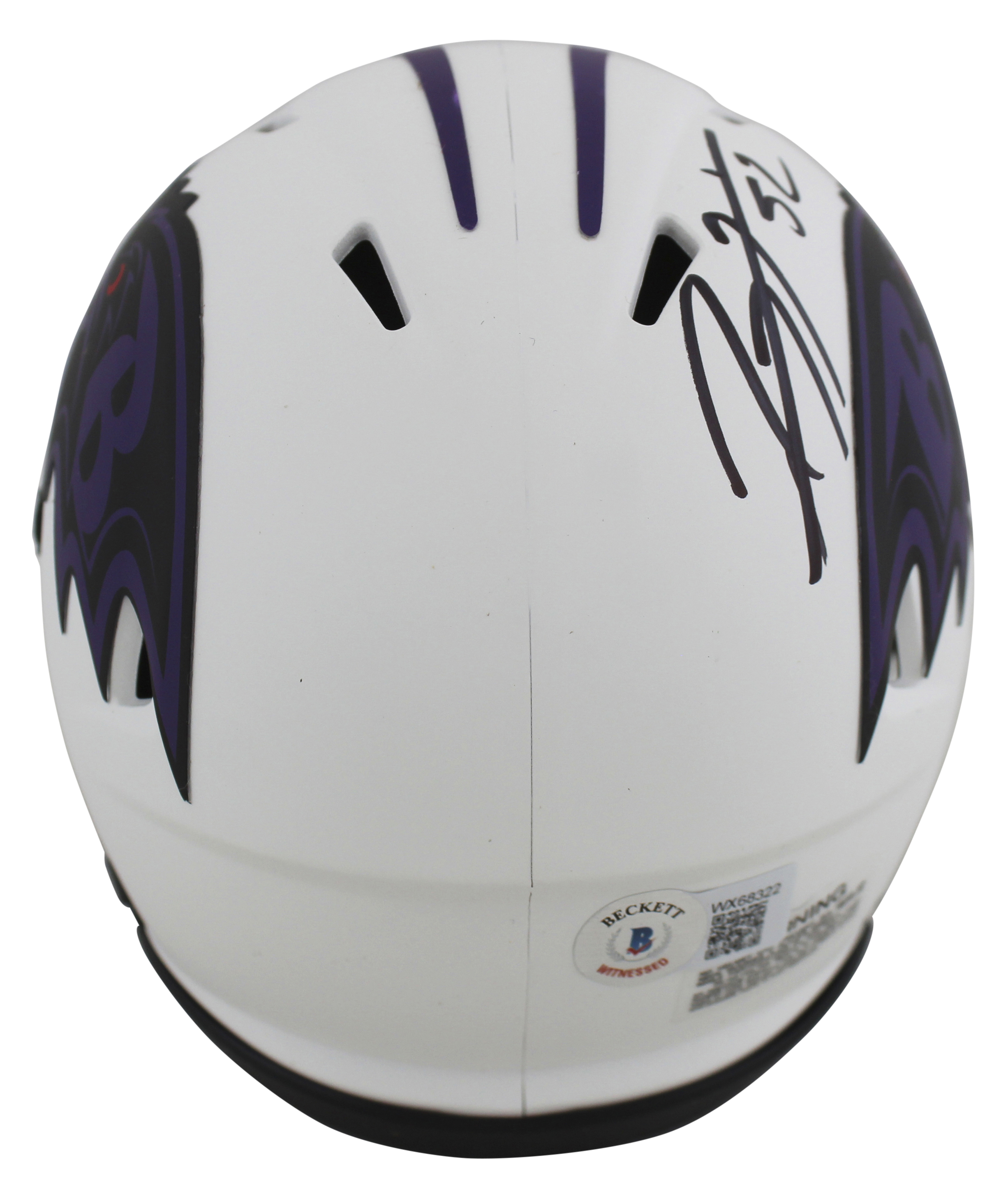 This Autographed w/ Black Signature Alternate Lunar Speed Mini Helmet has been Personally Signed by Ray Lewis of the Baltimore Ravens. This item is 100% Authentic to include a hologram by Beckett Authentication Services. This item may come with the new Beckett Authentication hologram that has a scannable QR code rather than the traditional COA. If you would like to have a COA, you are welcome to reach out to Beckett for a printed certification once you receive your item. This is a BAS Witnessed Protection Program item which means a Beckett Authentication Service representative was present when this item was being signed. We conducted an autograph signing with Ray Lewis where multiples of the same item were signed. While the photographs are representative of this item, the size, placement and strength of the signature may vary. Each item is hand signed, therefore, each autograph is unique. This item can be verified through BAS Witnessed.