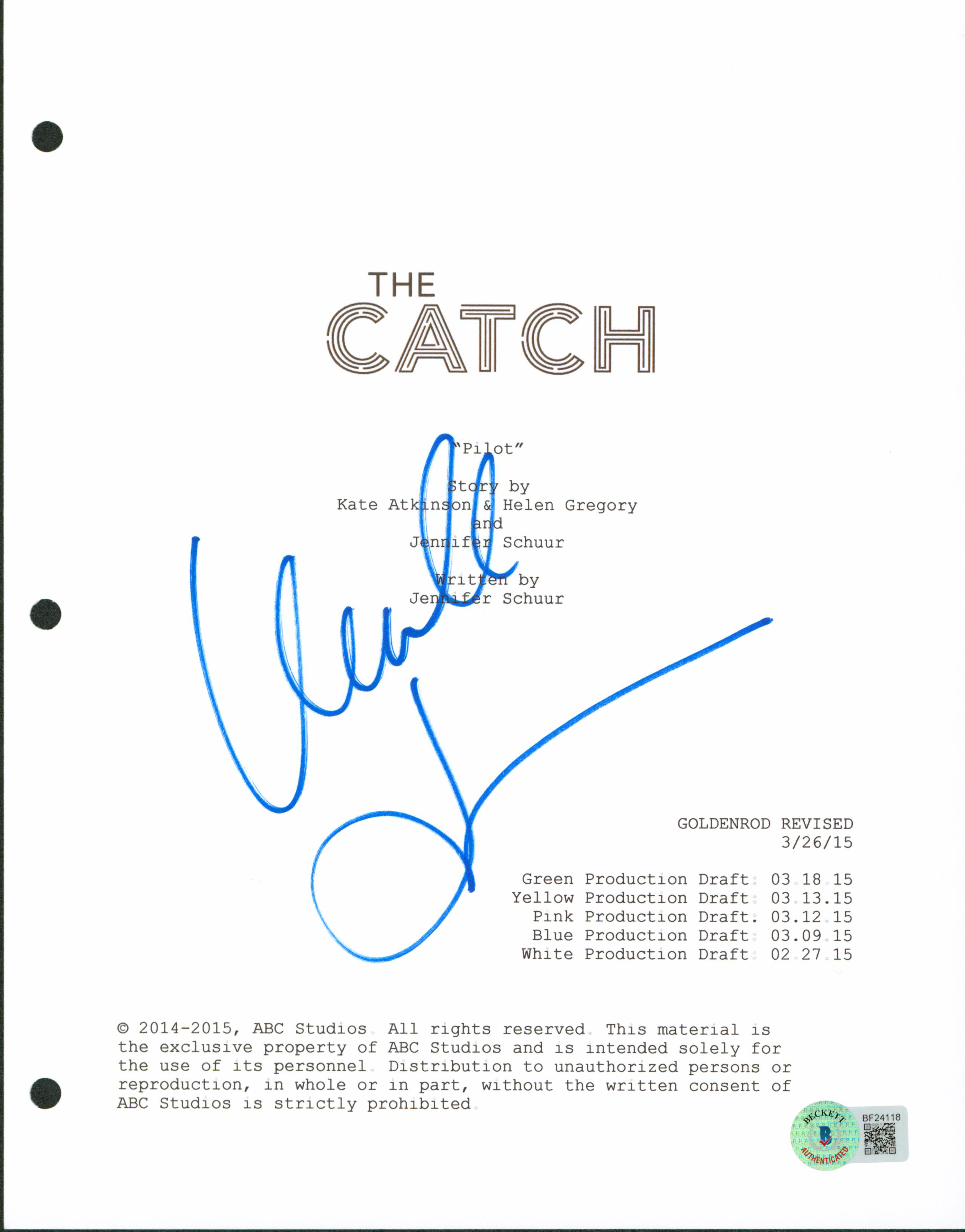 This Autographed The Catch 8.5x11 Script Cover has been Personally Signed by Mireille Enos of The Catch. This item is 100% Authentic to include a Certificate of Authenticity (COA) / hologram by Beckett Authentication Services. The authenticity can be verified on Beckett Authentication Services website.