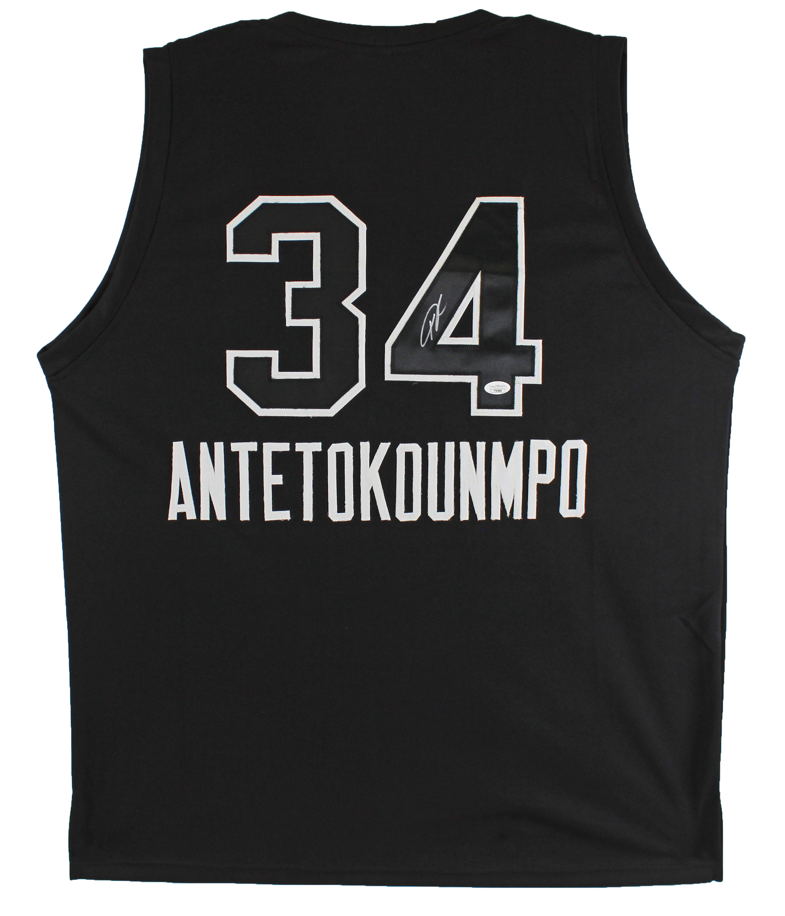 This Autographed w/ Black Numbers Black Pro Style Jersey has been Personally Signed by Giannis Antetokounmpo of the Milwaukee Bucks. his item is 100% Authentic to include a Certificate of Authenticity (COA) / hologram by JSA Witness or Beckett Witness. This is a Beckett Witnessed or JSA Witnessed Protection Program item which means a Beckett or JSA representative was present when this item was being signed. This item will come with the new Beckett Authentication hologram that has a scannable QR code rather than the traditional COA. If you would like to have a COA, you are welcome to reach out to Beckett for a printed certification once you receive your item. This is a stock item in which we have several available. We conducted an autograph signing with Giannis Antetokounmpo where multiples of the same item were signed. While the photographs are representative of this item, the size, placement and strength of the signature may vary. Each item is hand signed, therefore, each autograph is unique. This item can be verified through BAS Witnessed. This is a X-Large sized, non-branded, custom-stitched Jersey.