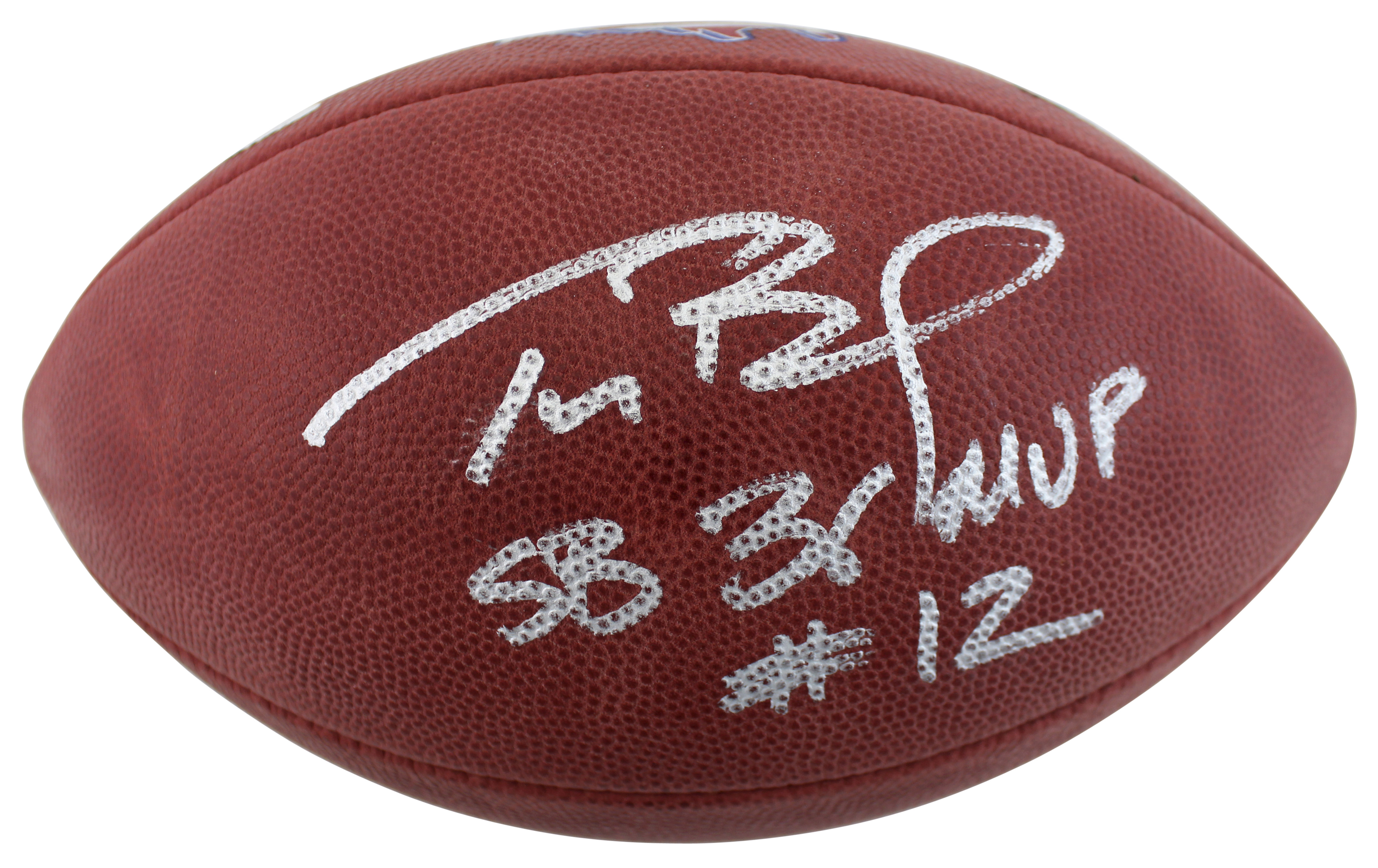 This Autographed Wilson Official Super Bowl XXXVI Logo Nfl Football with the inscription of "SB 36 MVP" has been Personally Signed by Tom Brady of the New England Patriots. This item is 100% Authentic to include a Certificate of Authenticity (COA) / hologram by TRI STAR. The authenticity can be verified on Tri Star Authentic website.