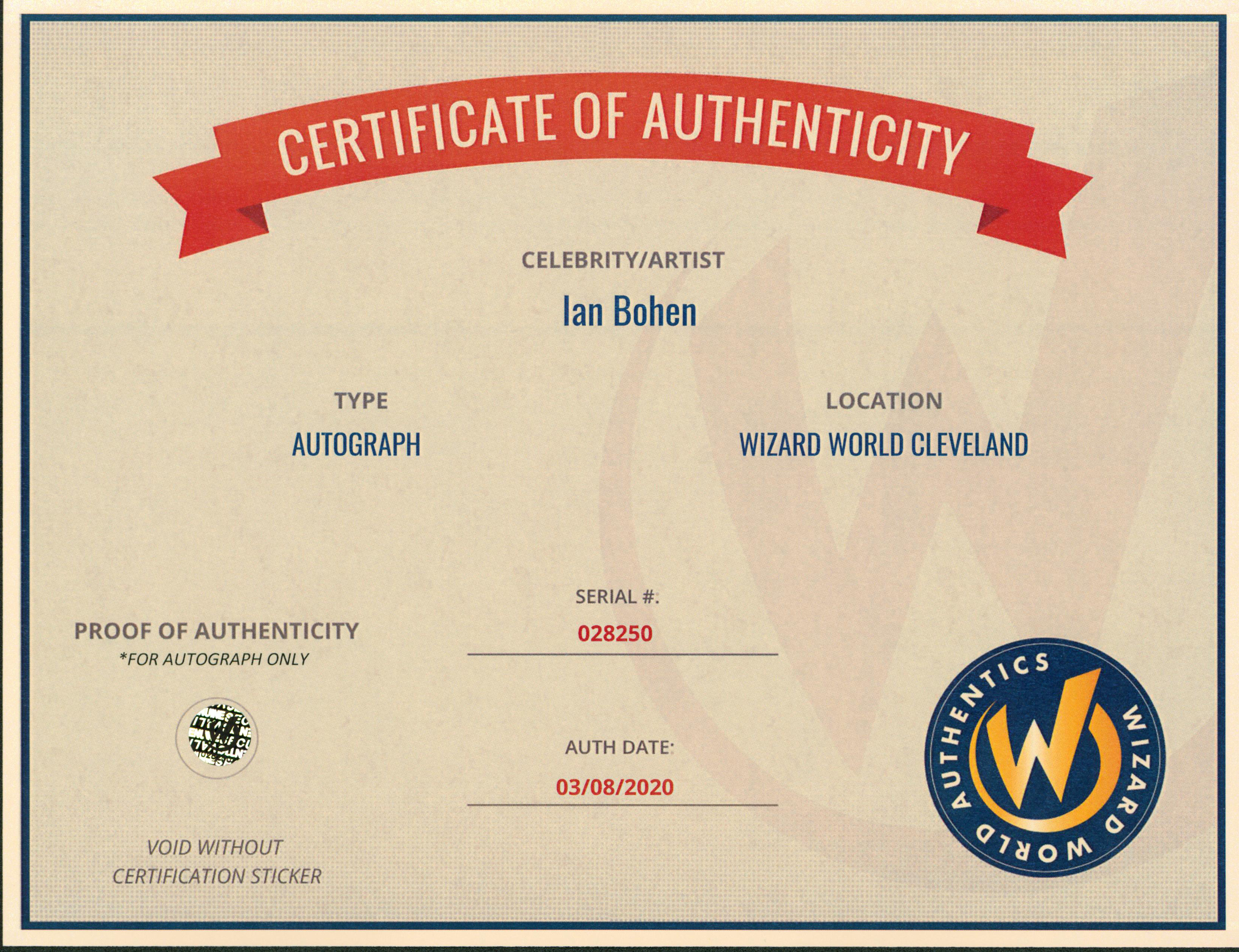 This Autographed 8x10 Photo has been Personally Signed by Ian Bohen of Yellowstone. This item is 100% Authentic to include a Certificate of Authenticity (COA) / hologram by Wizard World Authentics. A Wizard World Authentics representative was present when this item was being signed, the date of the signing is notated on the COA. We have multiples of this same item. While the photographs are representative of this item, the size, placement and strength of the signature may vary. Each item is hand signed, therefore, each autograph is unique.