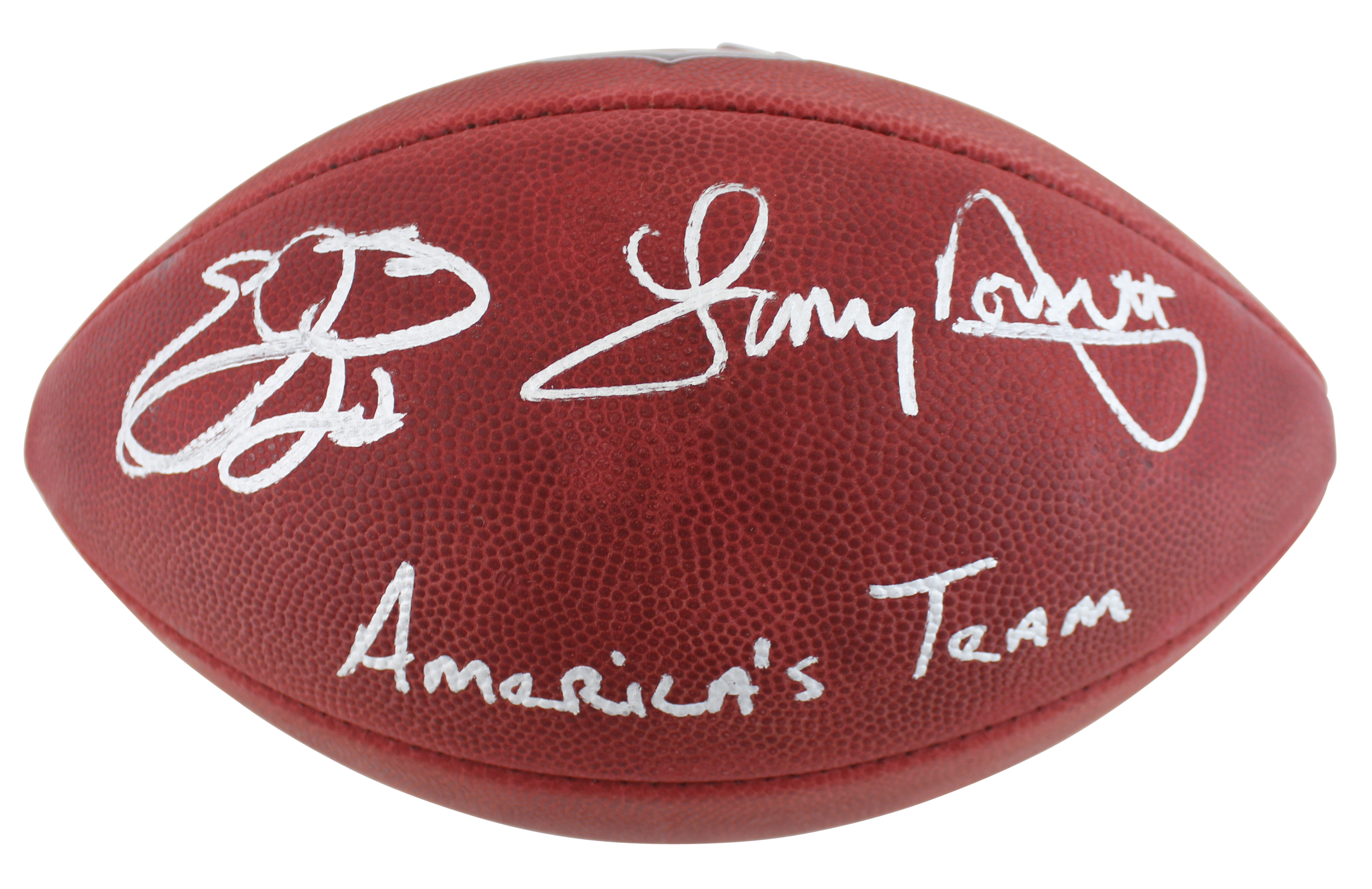 This Autographed Official Wilson "The Duke" Nfl Football with the inscription of "America's Team (Dorsett)" has been Personally Signed by Tony Dorsett & Emmitt Smith of the Dallas Cowboys. This item is 100% Authentic to include a hologram by Beckett Authentication Services. This item will come with the new Beckett Authentication hologram that has a scannable QR code rather than the traditional COA. If you would like to have a COA, you are welcome to reach out to Beckett for a printed certification once you receive your item. This is a BAS Witnessed Protection Program item which means a Beckett Authentication Service representative was present when this item was being signed. We conducted an autograph signing with Tony Dorsett & Emmitt Smith where multiples of the same item were signed. While the photographs are representative of this item, the size, placement and strength of the signature may vary. Each item is hand signed, therefore, each autograph is unique. This item can be verified through BAS Witnessed.