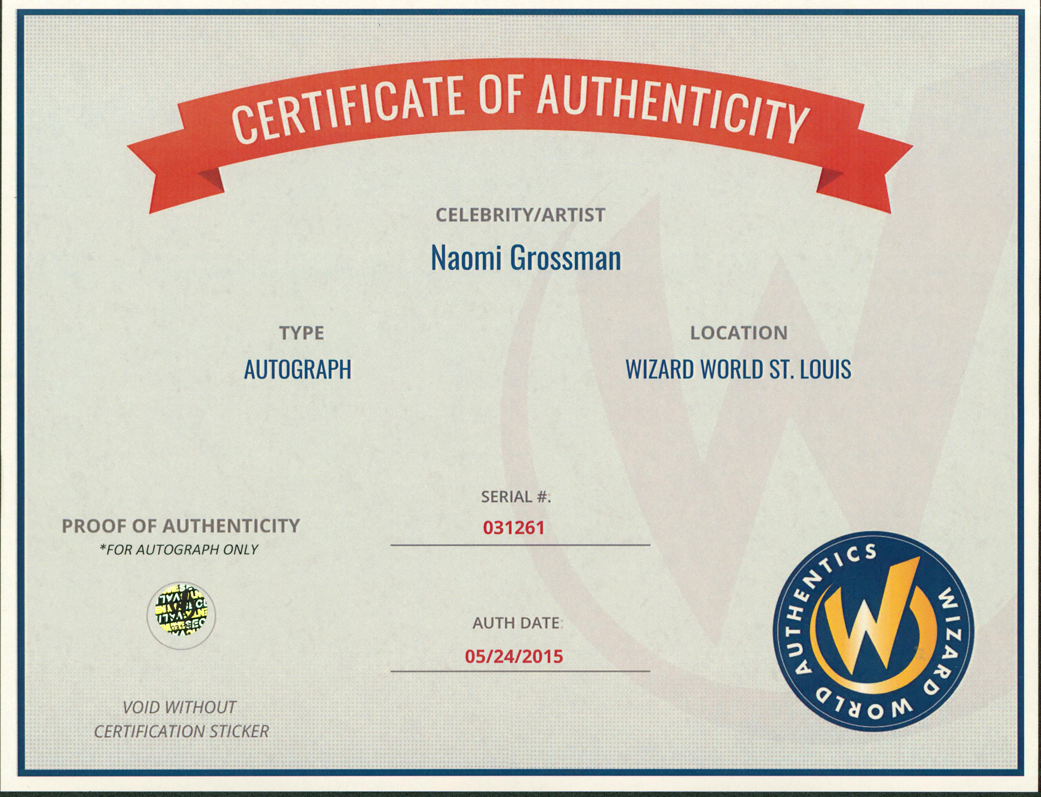This Autographed 8x10 Photo with the inscription of "Rats!" has been Personally Signed by Naomi Grossman of American Horror Story. This item is 100% Authentic to include a Certificate of Authenticity (COA) / hologram by Wizard World Authentics. A Wizard World Authentics representative was present when this item was being signed, the date of the signing is notated on the COA. We have multiples of this same item. While the photographs are representative of this item, the size, placement and strength of the signature may vary. Each item is hand signed, therefore, each autograph is unique.