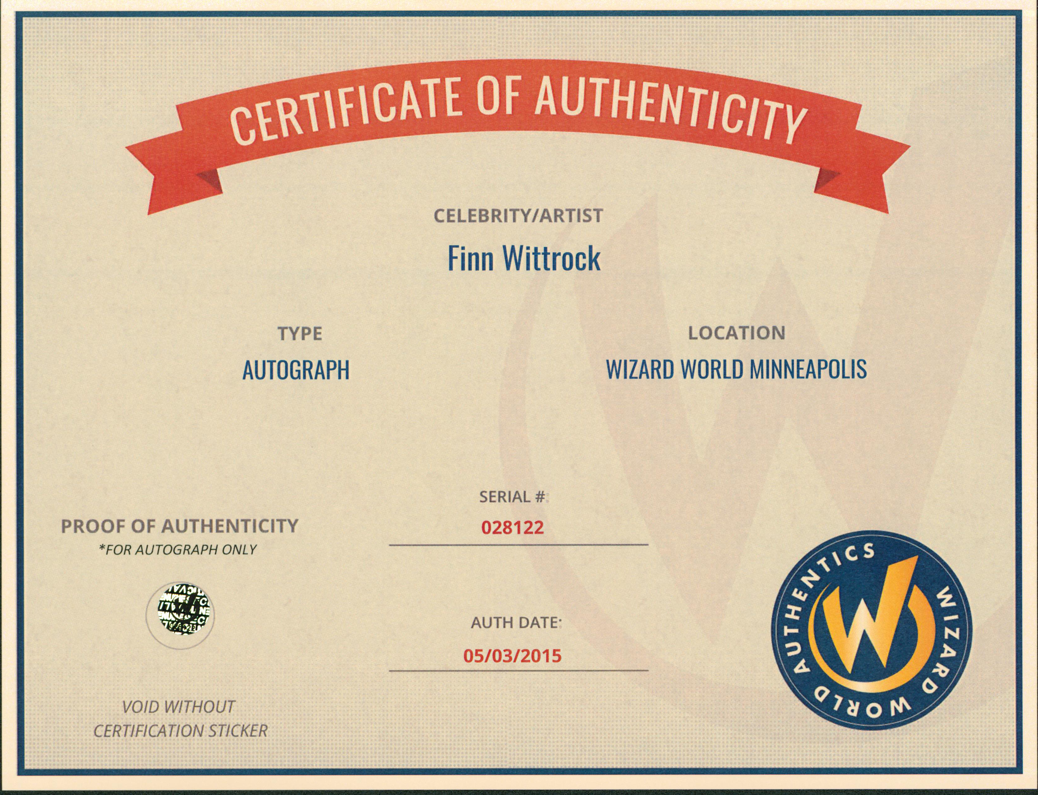This Autographed 8x10 Photo has been Personally Signed by Finn Wittrock of American Horror Story. This item is 100% Authentic to include a Certificate of Authenticity (COA) / hologram by Wizard World Authentics. A Wizard World Authentics representative was present when this item was being signed, the date of the signing is notated on the COA. We have multiples of this same item. While the photographs are representative of this item, the size, placement and strength of the signature may vary. Each item is hand signed, therefore, each autograph is unique.