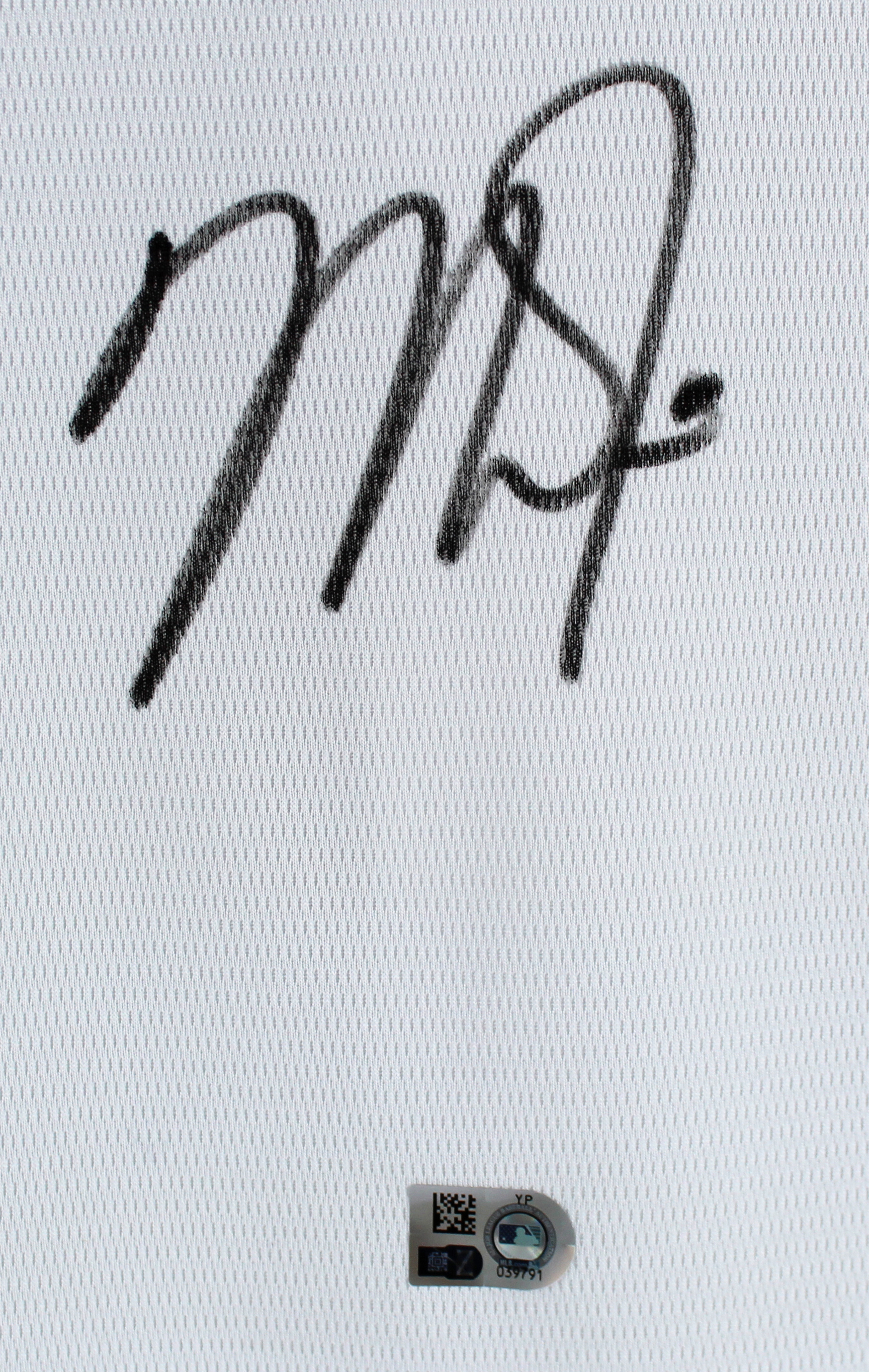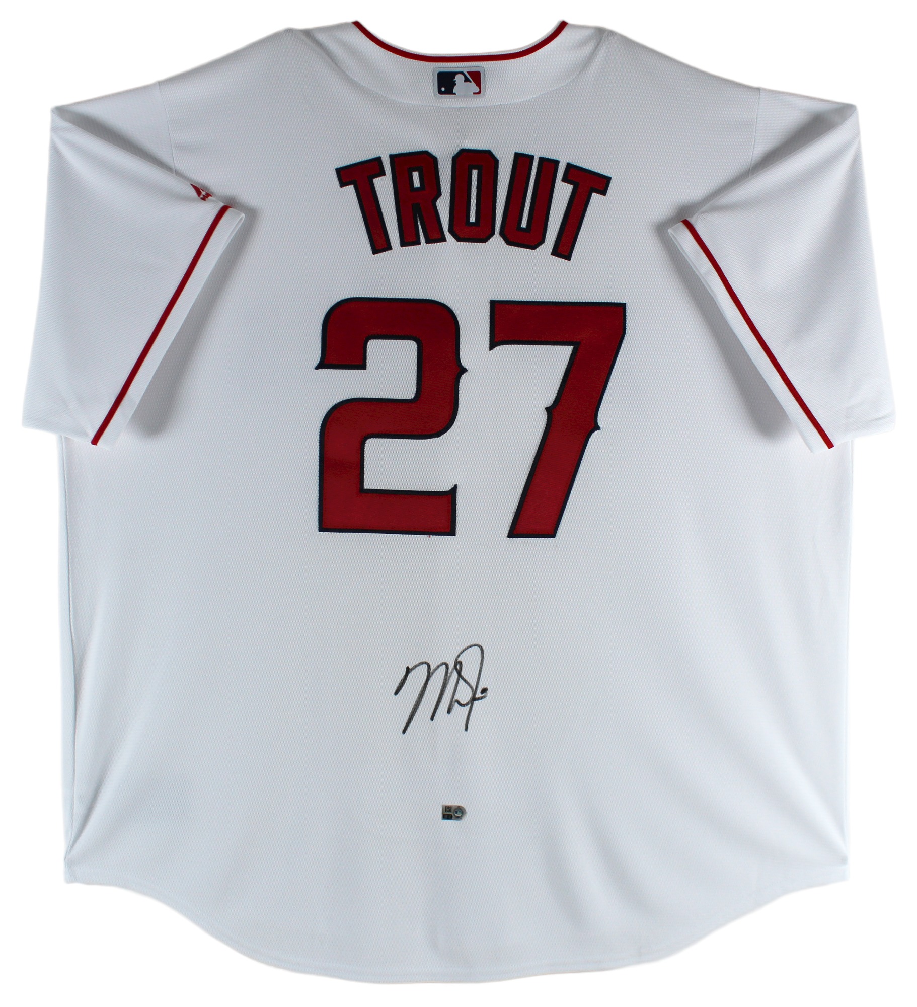 This Autographed White Majestic Cool Base Jersey has been Personally Signed by Mike Trout of the Los Angeles Angels. This item is 100% Authentic to include a numbered hologram from MLB. We conducted an autograph signing with Mike Trout where multiples of the same item were signed. While the photographs are representative of this item, the size, placement and strength of the signature may vary. Each item is hand signed, therefore, each autograph is unique. This item can be verified through MLB. Multiple sizes available. Reach out for availability.