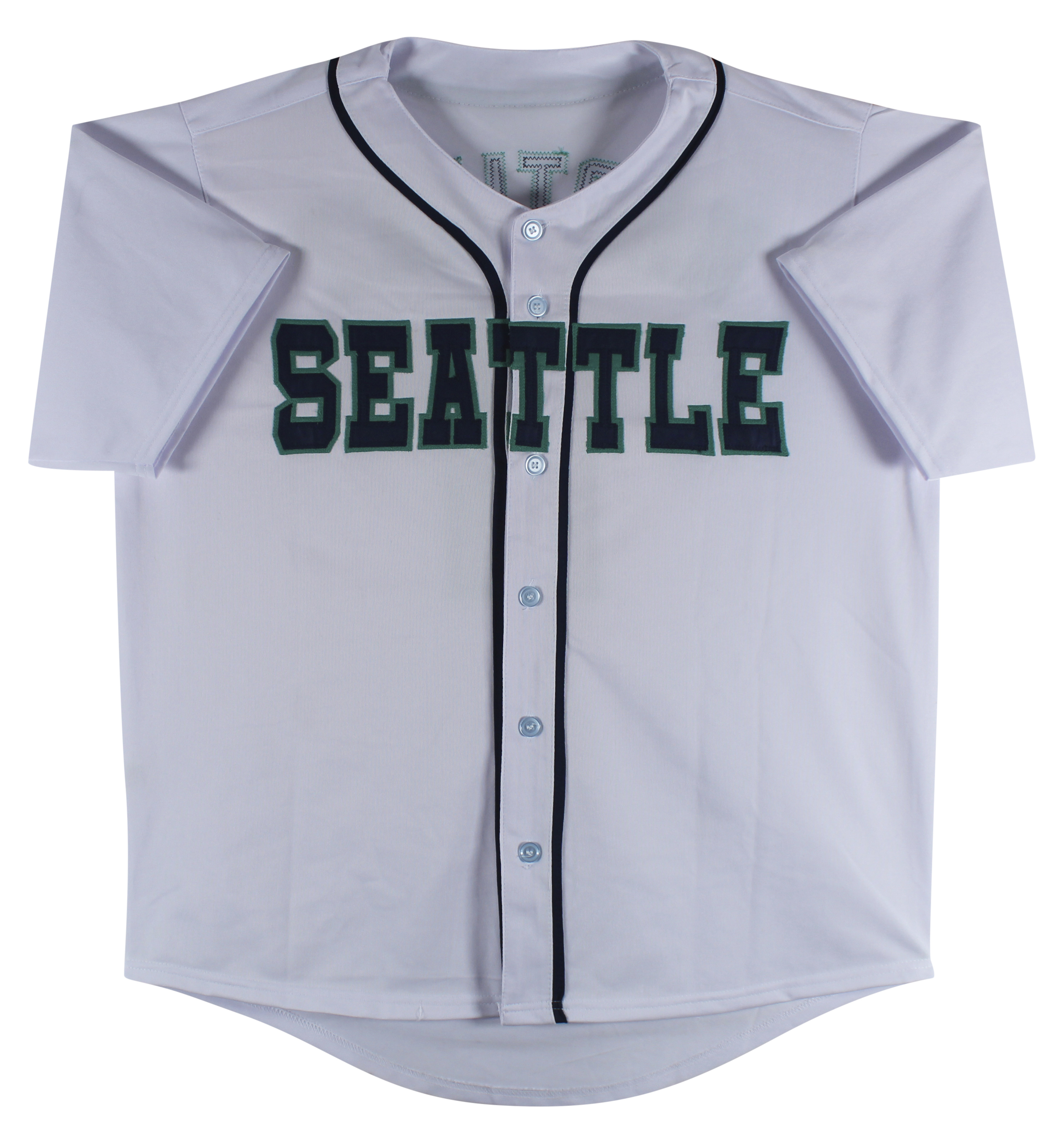 This Autographed White Pro Style Jersey has been Personally Signed by Edgar Martinez of the Seattle Mariners. This item is 100% Authentic to include a hologram by Beckett Authentication Services. This item may come with the new Beckett Authentication hologram that has a scannable QR code rather than the traditional COA. If you would like to have a COA, you are welcome to reach out to Beckett for a printed certification once you receive your item. This is a BAS Witnessed Protection Program item which means a Beckett Authentication Service representative was present when this item was being signed. We conducted an autograph signing with Edgar Martinez where multiples of the same item were signed. While the photographs are representative of this item, the size, placement and strength of the signature may vary. Each item is hand signed, therefore, each autograph is unique. This item can be verified through BAS Witnessed. This is a X-Large sized, non-branded, custom-stitched Jersey.
