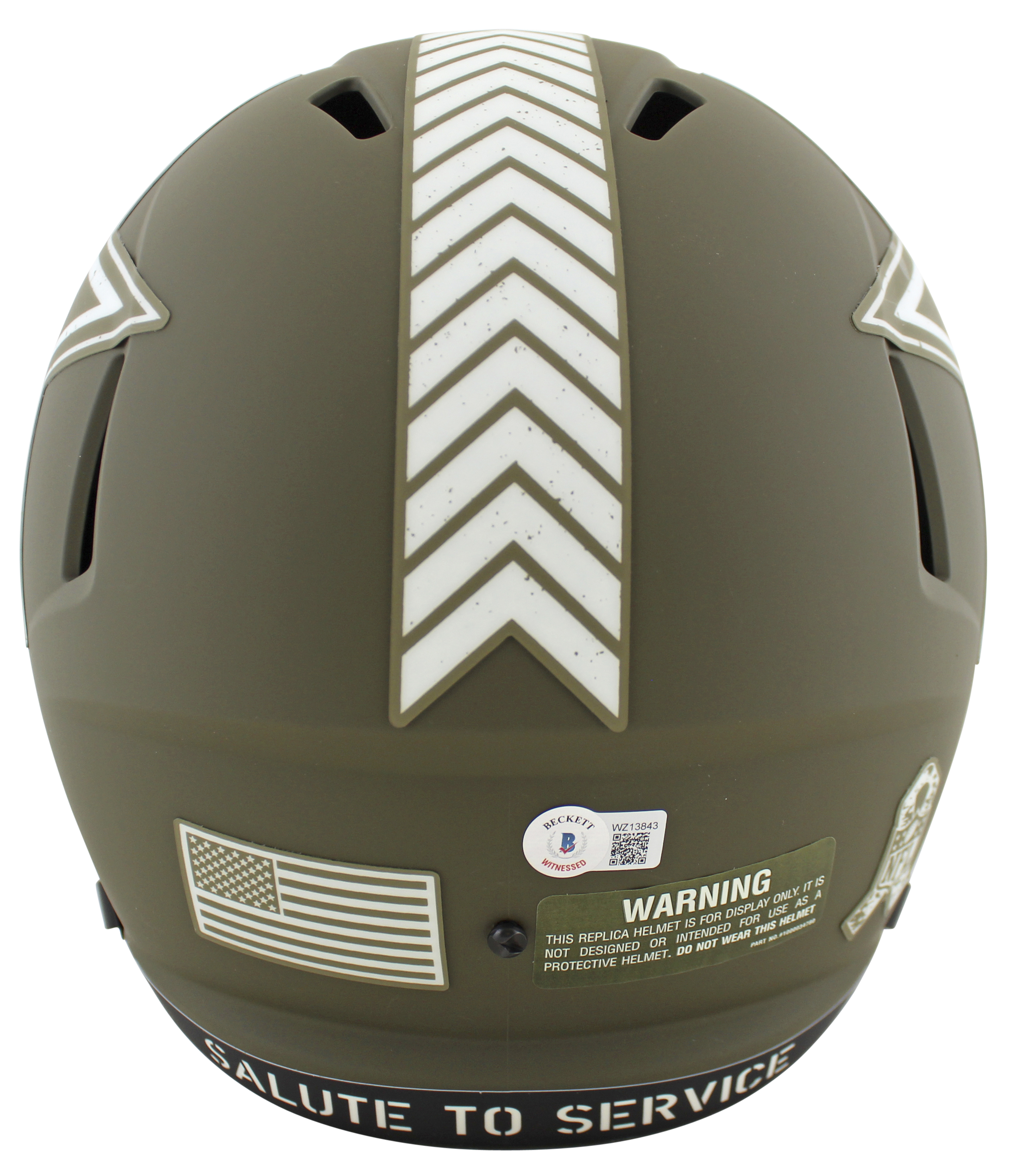 Cowboys Dak Prescott Signed Salute To Service Full Size Speed Rep Helmet BAS Wit