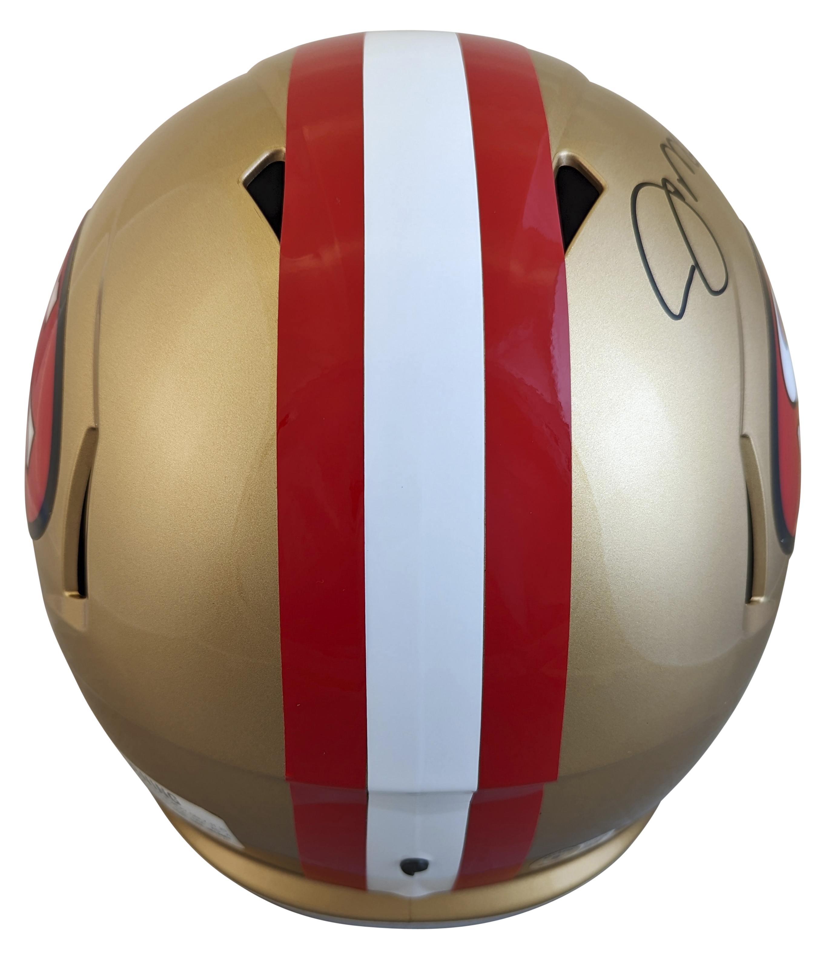 This Autographed 1964-95 Throwback Full Size Speed Rep Helmet has been Personally Signed by Joe Montana of the San Francisco 49ers. This item is 100% Authentic to includes a numbered hologram by Fanatics. We conducted an autograph signing with Joe Montana where multiples of the same item were signed. While the photographs are representative of this item, the size, placement and strength of the signature may vary. Each item is hand signed, therefore, each autograph is unique. This item can be verified through Fanatics.