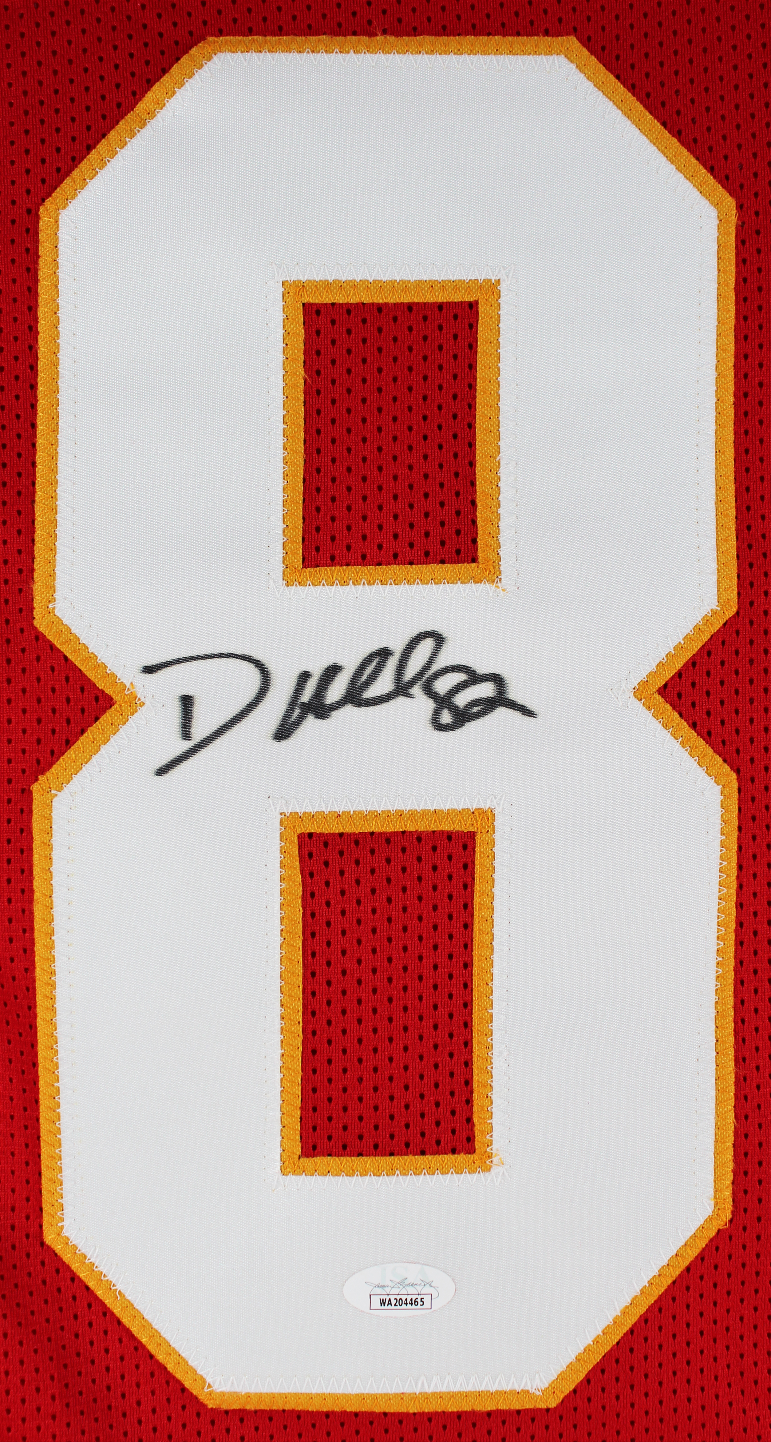 This Autographed Red Pro Style Jersey has been Personally Signed by Dante Hall of the Kansas City Chiefs. This item is 100% Authentic to include a Certificate of Authenticity (COA) / hologram by JSA Witness. This is a JSA Witnessed Protection Program item which means a JSA representative was present when this item was being signed. We conducted an autograph signing with Dante Hall where multiples of the same item were signed. While the photographs are representative of this item, the size, placement and strength of the signature may vary. Each item is hand signed, therefore, each autograph is unique. This item can be verified through JSA Witness. This is a X-Large sized, non-branded, custom-stitched Jersey.