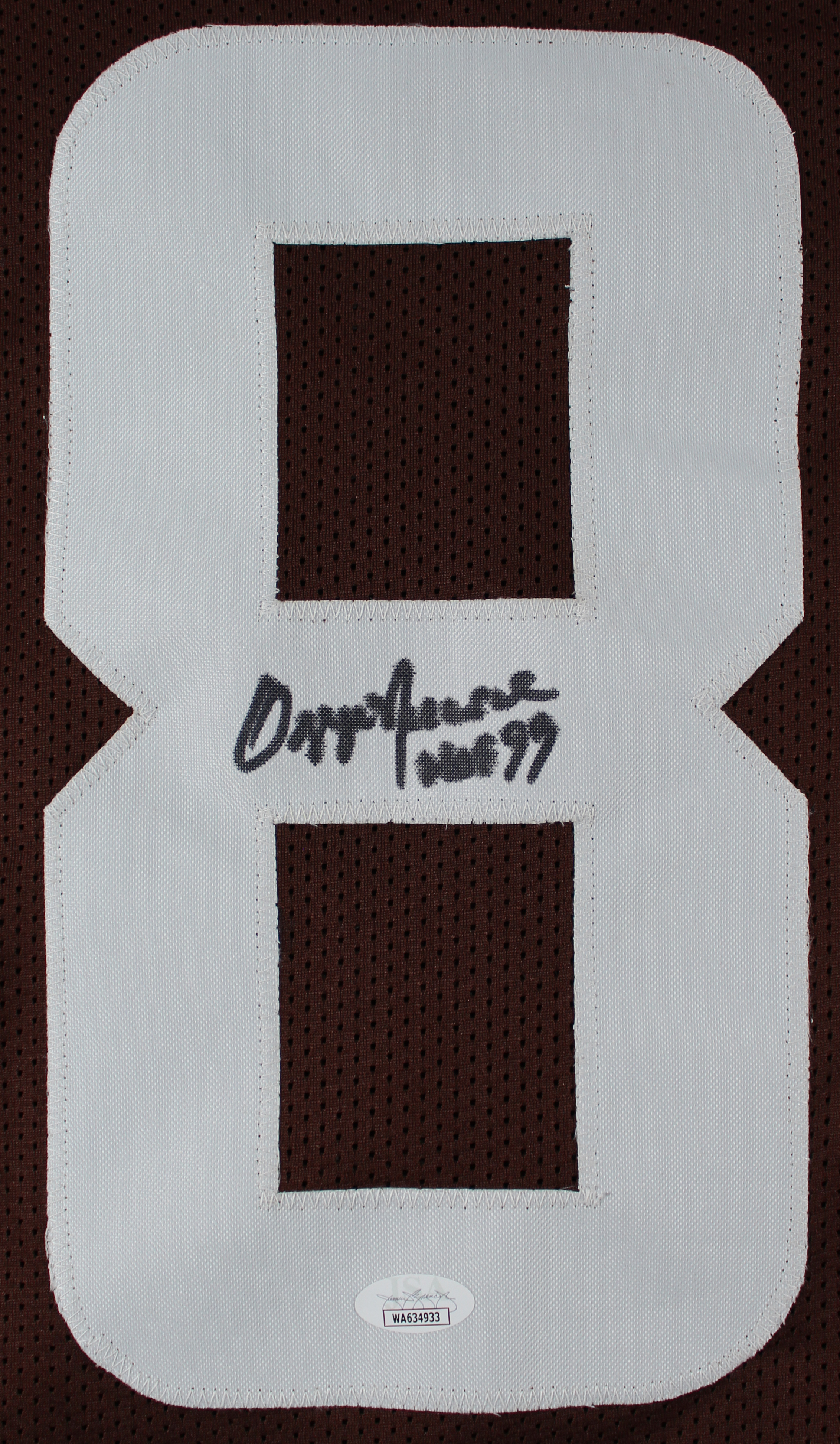 This Autographed Brown Pro Style Jersey with the inscription of "HOF 99" has been Personally Signed by Ozzie Newsom of the Cleveland Browns. This item is 100% Authentic to include a Certificate of Authenticity (COA) / hologram by JSA Witness. This is a JSA Witnessed Protection Program item which means a JSA representative was present when this item was being signed. We conducted an autograph signing with Ozzie Newsom where multiples of the same item were signed. While the photographs are representative of this item, the size, placement and strength of the signature may vary. Each item is hand signed, therefore, each autograph is unique. This item can be verified through JSA Witness. This is a X-Large sized, non-branded, custom-stitched Jersey.