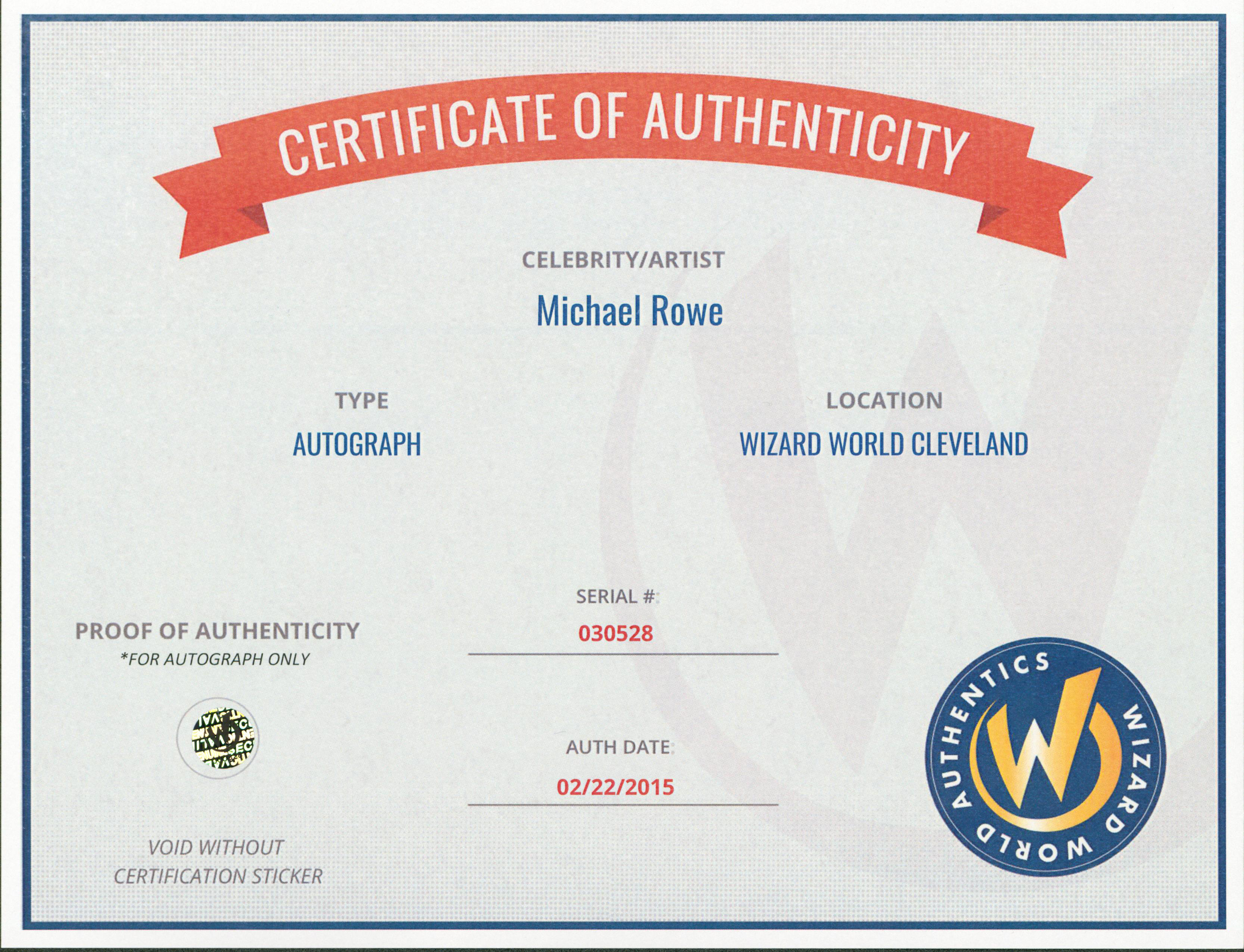 This Autographed 8x10 Photo has been Personally Signed by Michael Rowe of Arrow. This item is 100% Authentic to include a Certificate of Authenticity (COA) / hologram by Wizard World Authentics. A Wizard World Authentics representative was present when this item was being signed, the date of the signing is notated on the COA. We have multiples of this same item. While the photographs are representative of this item, the size, placement and strength of the signature may vary. Each item is hand signed, therefore, each autograph is unique.