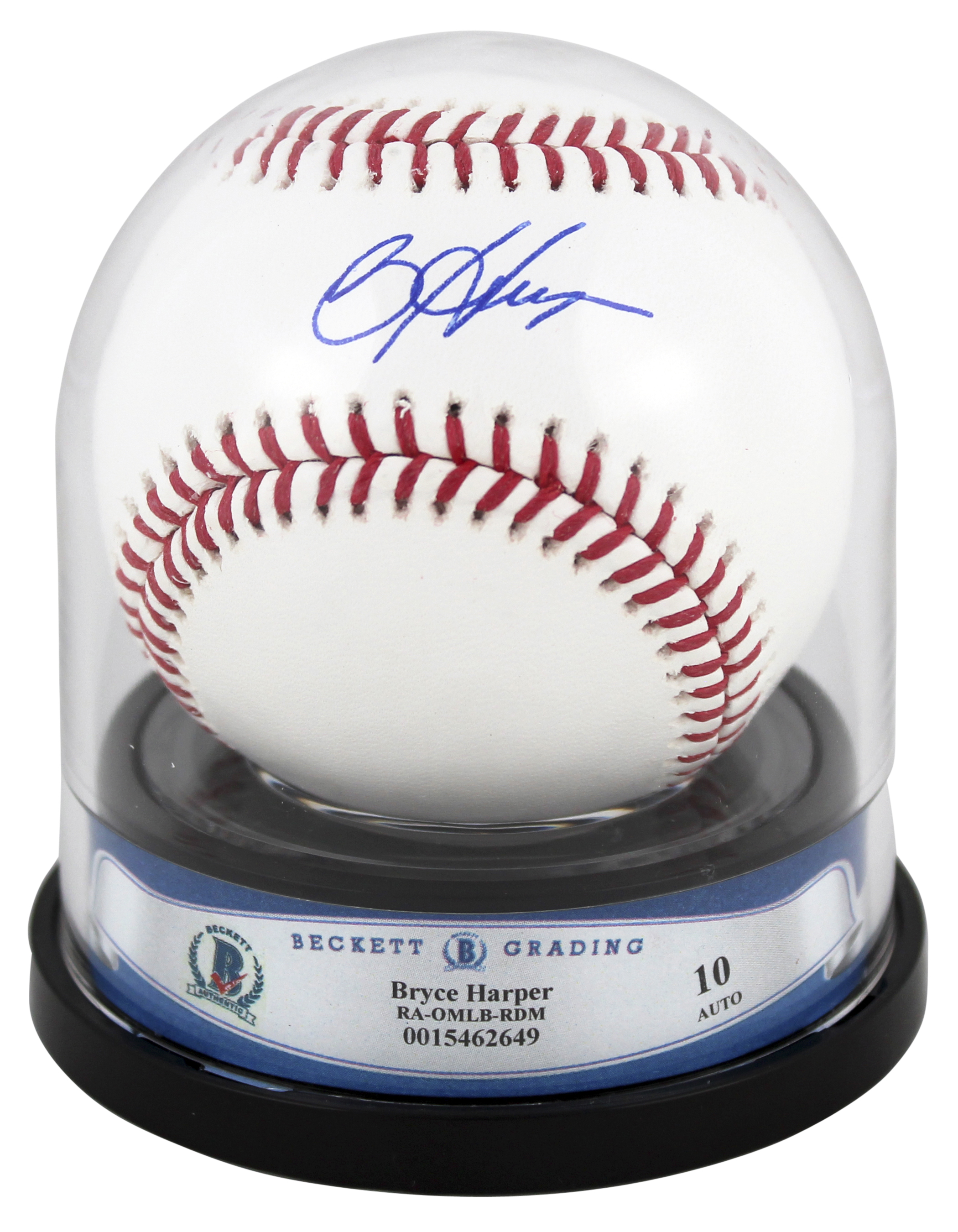 This Autographed Auto Graded Gem Mint 10! Oml Baseball has been Personally Signed by Bryce Harper of the Philladelphia Phillies. This item is 100% Authentic, it comes graded, encapsulated and authenticated by Beckett Authentication Services. We have multiples of this same item. While the photographs are representative of this item, the size and placement of the signature may vary. Each item is hand signed, therefore, each autograph is unique.