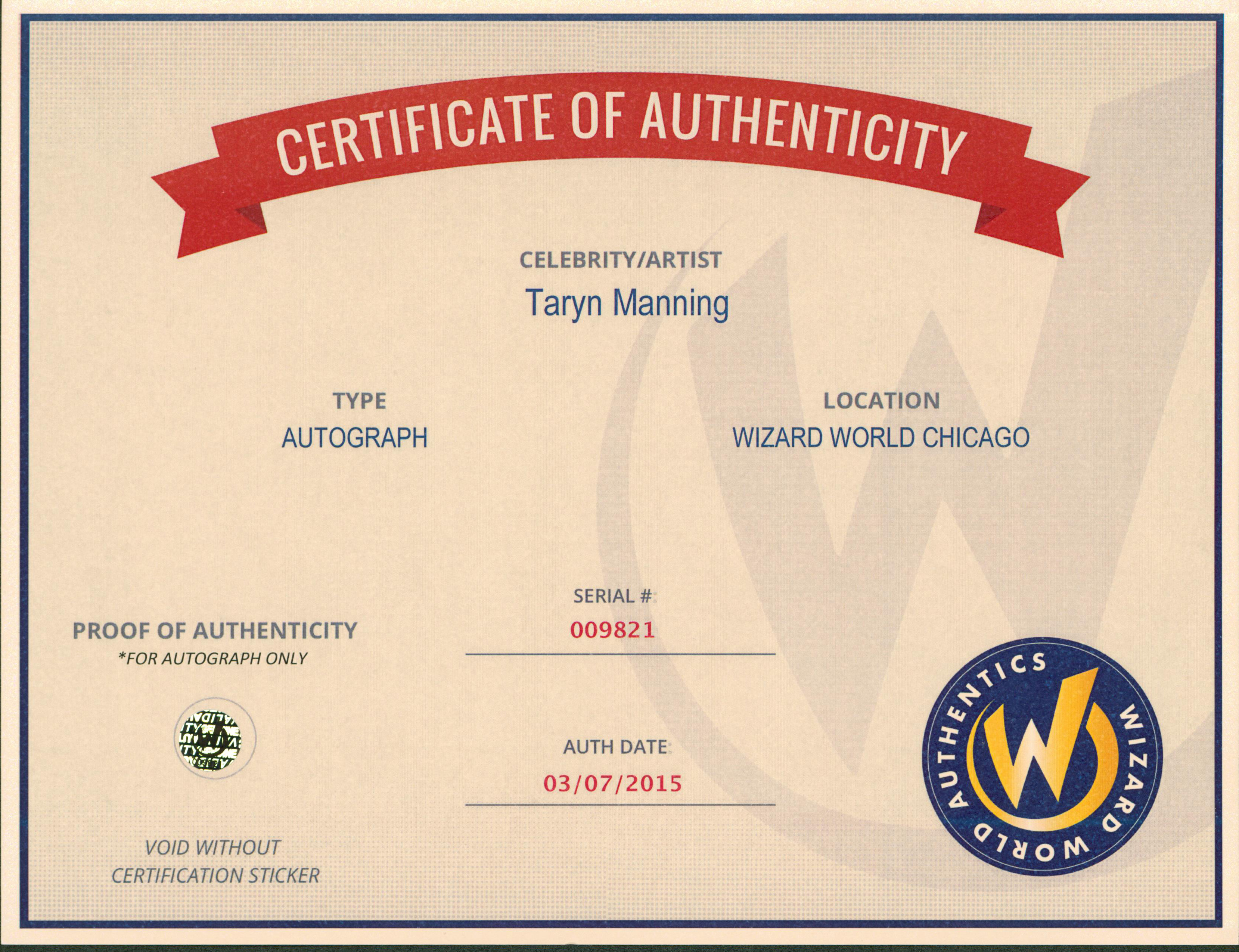This Autographed 8x10 Photo has been Personally Signed by Taryn Manning of Hustle & Flow. This item is 100% Authentic to include a Certificate of Authenticity (COA) / hologram by Wizard World Authentics. A Wizard World Authentics representative was present when this item was being signed, the date of the signing is notated on the COA. We have multiples of this same item. While the photographs are representative of this item, the size, placement and strength of the signature may vary. Each item is hand signed, therefore, each autograph is unique.