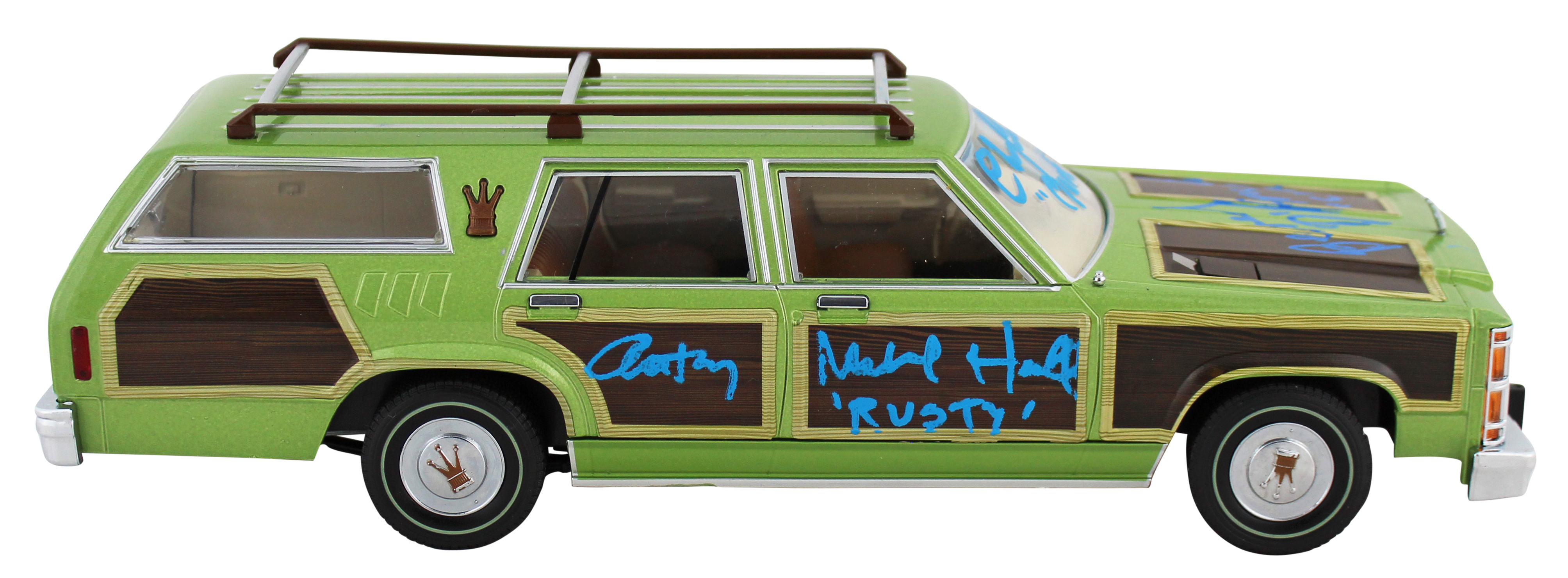 This Autographed 1:18 Scale Wagon Queen Family Truckster with the inscription of "Clark (Chase), Ellen (D'Angelo), Rusty (Hall), & Audrey #1 (Barron)" has been Personally Signed by Chevy Chase, Beverly D'Angelo, Anthony Michael Hall & Dana Barron of National Lampoon's Vacation. This item is 100% Authentic to include a hologram by Beckett Authentication Services. This item may come with the new Beckett Authentication hologram that has a scannable QR code rather than the traditional COA. If you would like to have a COA, you are welcome to reach out to Beckett for a printed certification once you receive your item. This is a BAS Witnessed Protection Program item which means a Beckett Authentication Service representative was present when this item was being signed.The authenticity can be verified on Beckett Authentication Services website.