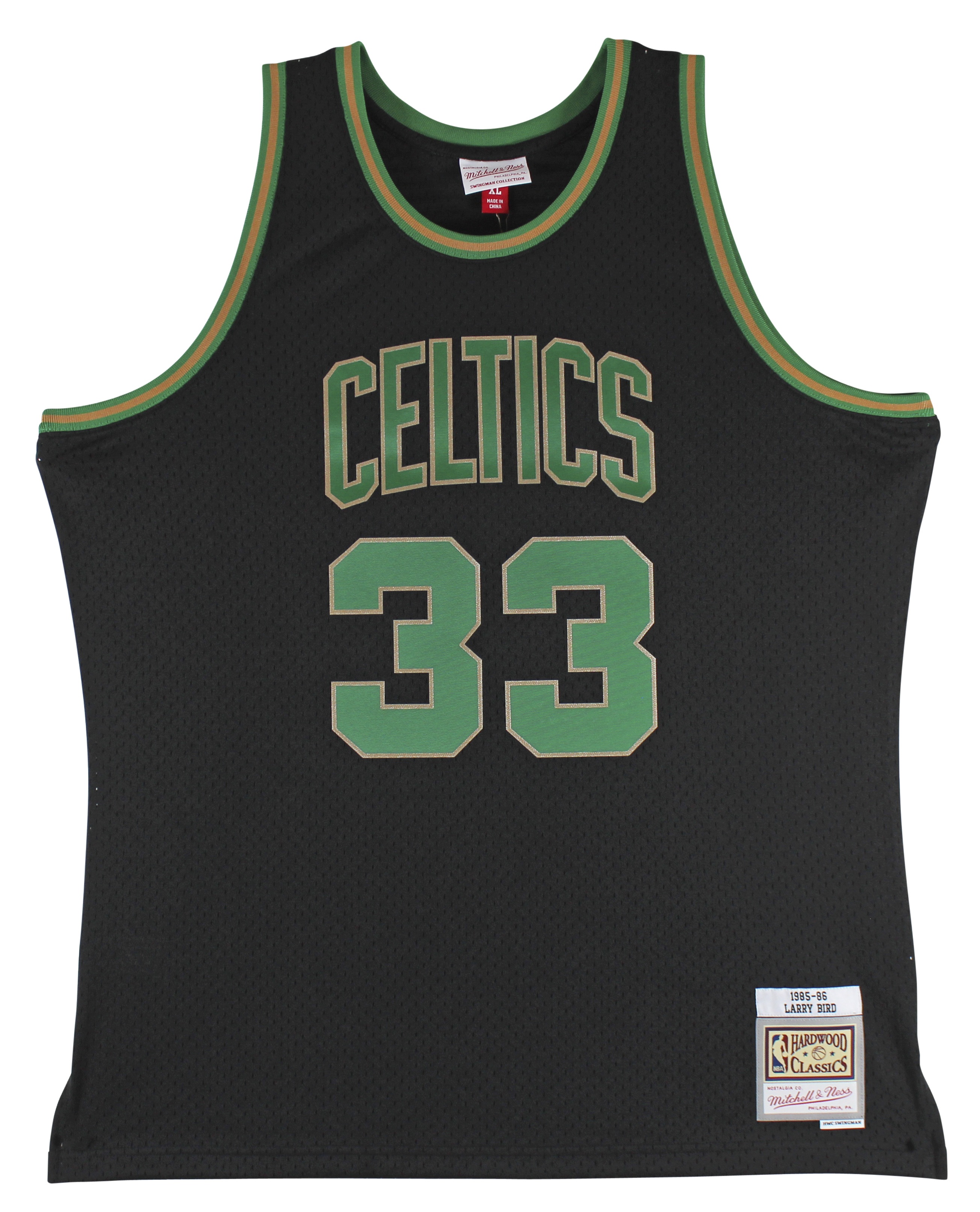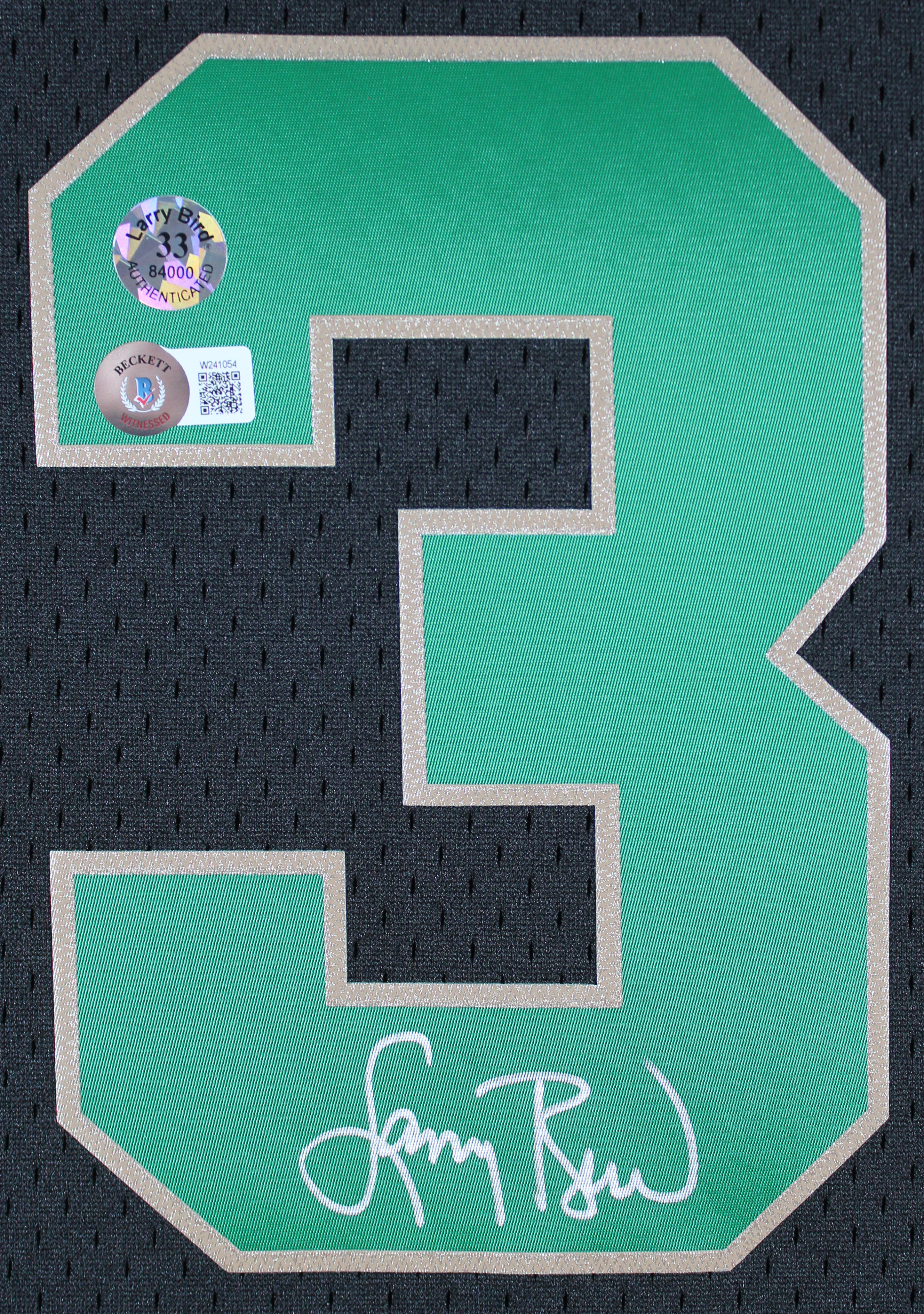 This Autographed Black Mitchell & Ness Hardwood Classics Swingman Jersey has been Personally Signed by Larry Bird of the Boston Celtics. This item is 100% Authentic to include a hologram by Beckett Authentication Services. This item will come with an affixed Beckett Authentication Services (BAS) authentication sticker, which includes a scannable QR code to verify authenticity. Please note that Beckett no longer provides serial-numbered COA cards, and the attached BAS sticker will serve as the complete authentication for this item. This is a BAS Witnessed Protection Program item which means a Beckett Authentication Service representative was present when this item was being signed. We conducted an autograph signing with Larry Bird where multiples of the same item were signed. While the photographs are representative of this item, the size, placement and strength of the signature may vary. Each item is hand signed, therefore, each autograph is unique. This item can be verified through BAS Witnessed. This is a X-Large sized Jersey.