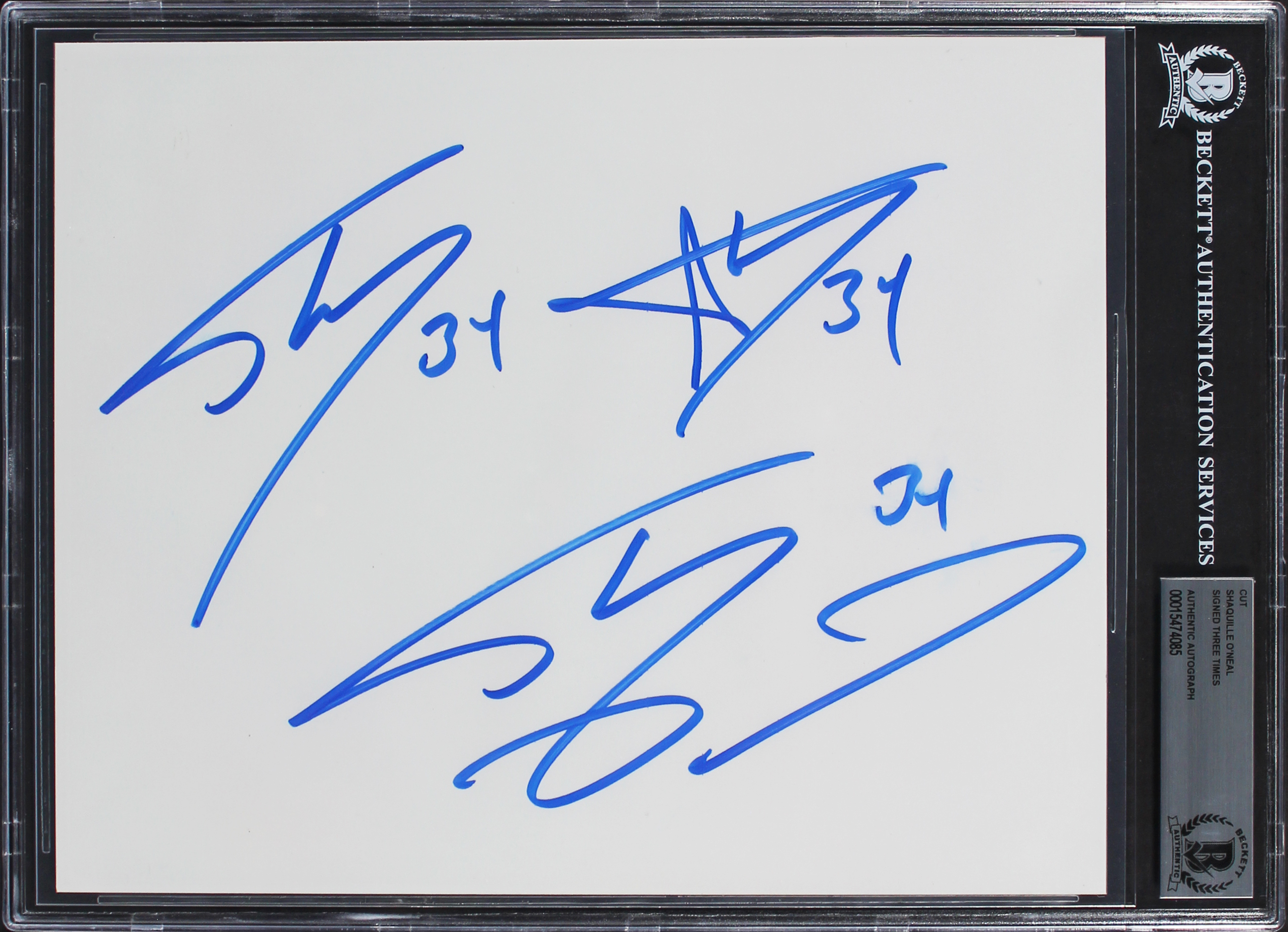 Lakers Shaquille O'Neal Authentic 3x Signed 8x10 Cut Signature BAS Slabbed