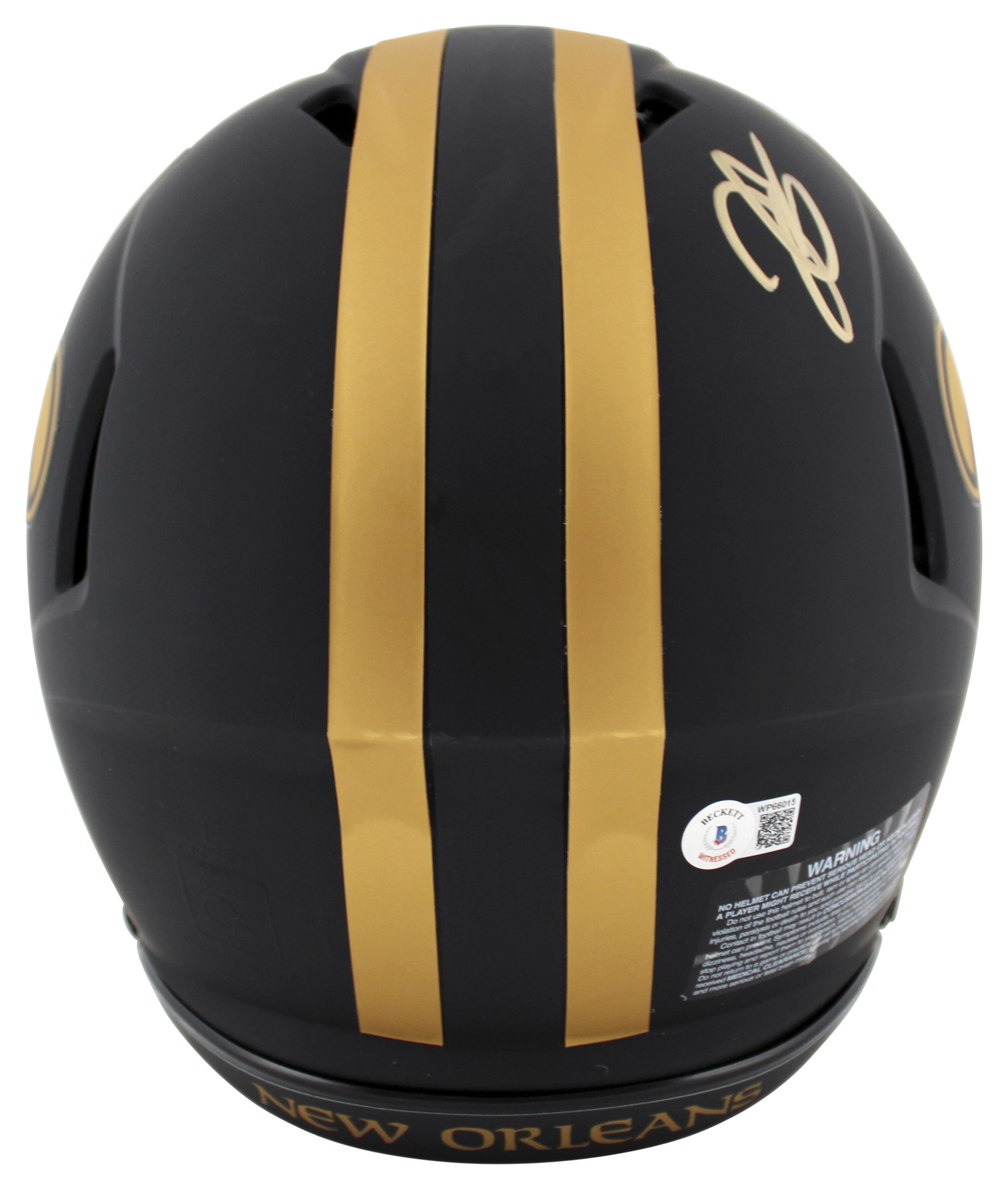 This Autographed Alternate Eclipse Riddell Authentic Full Size Speed Proline Helmet has been Personally Signed by Derek Carr & Michael Thomas of the New Orleans Saints. This item is 100% Authentic to include a hologram by Beckett Authentication Services. This item will come with an affixed Beckett Authentication Services (BAS) authentication sticker, which includes a scannable QR code to verify authenticity. Please note that Beckett no longer provides serial-numbered COA cards, and the attached BAS sticker will serve as the complete authentication for this item. This is a BAS Witnessed Protection Program item which means a Beckett Authentication Service representative was present when this item was being signed. We conducted an autograph signing with Derek Carr & Michael Thomas where multiples of the same item were signed. While the photographs are representative of this item, the size, placement and strength of the signature may vary. Each item is hand signed, therefore, each autograph is unique. This item can be verified through BAS Witnessed.