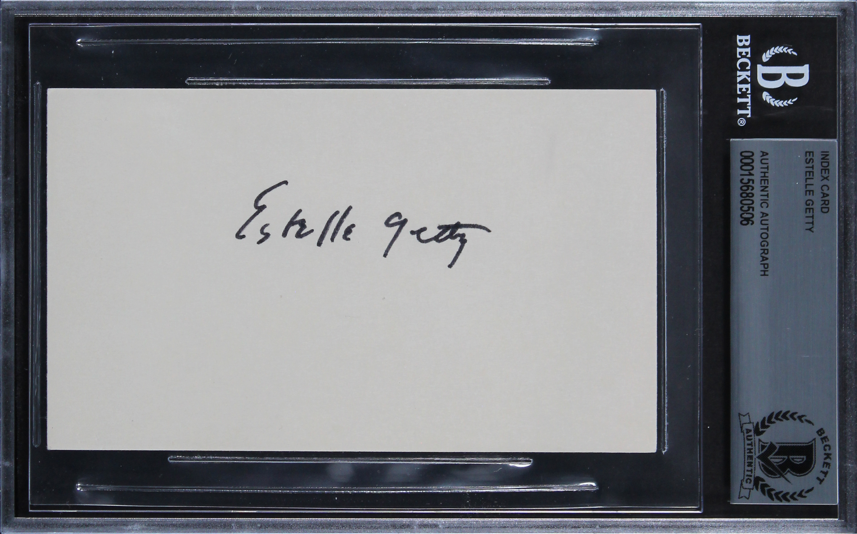 This Autographed 3x5 Index Card has been Personally Signed by Estelle Getty of The Golden Girls. This item is 100% Authentic, it comes slabbed and authenticated by Beckett Authentication Services. The authenticity can be verified on Beckett Authentication Services website.