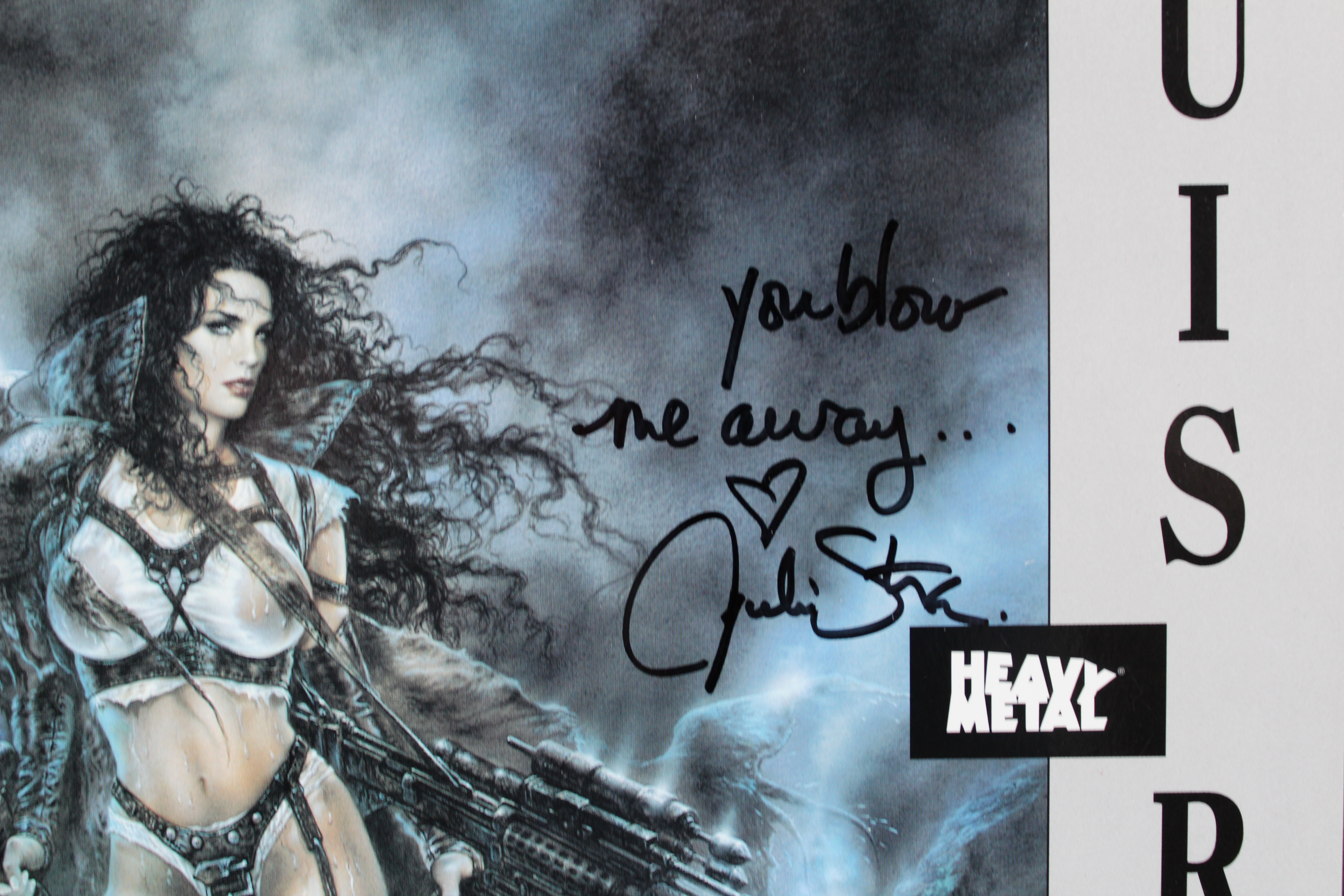 This Autographed 1999 Luis Royo Calendar with the inscription of "You Blow Me Awayy.." has been Personally Signed by Julie Strain of Heavy Metal. This item is 100% Authentic to include a hologram by Beckett Authentication Services. This item will come with an affixed Beckett Authentication Services (BAS) authentication sticker, which includes a scannable QR code to verify authenticity. Please note that Beckett no longer provides serial-numbered COA cards, and the attached BAS sticker will serve as the complete authentication for this item. The authenticity can be verified on Beckett Authentication Services website.