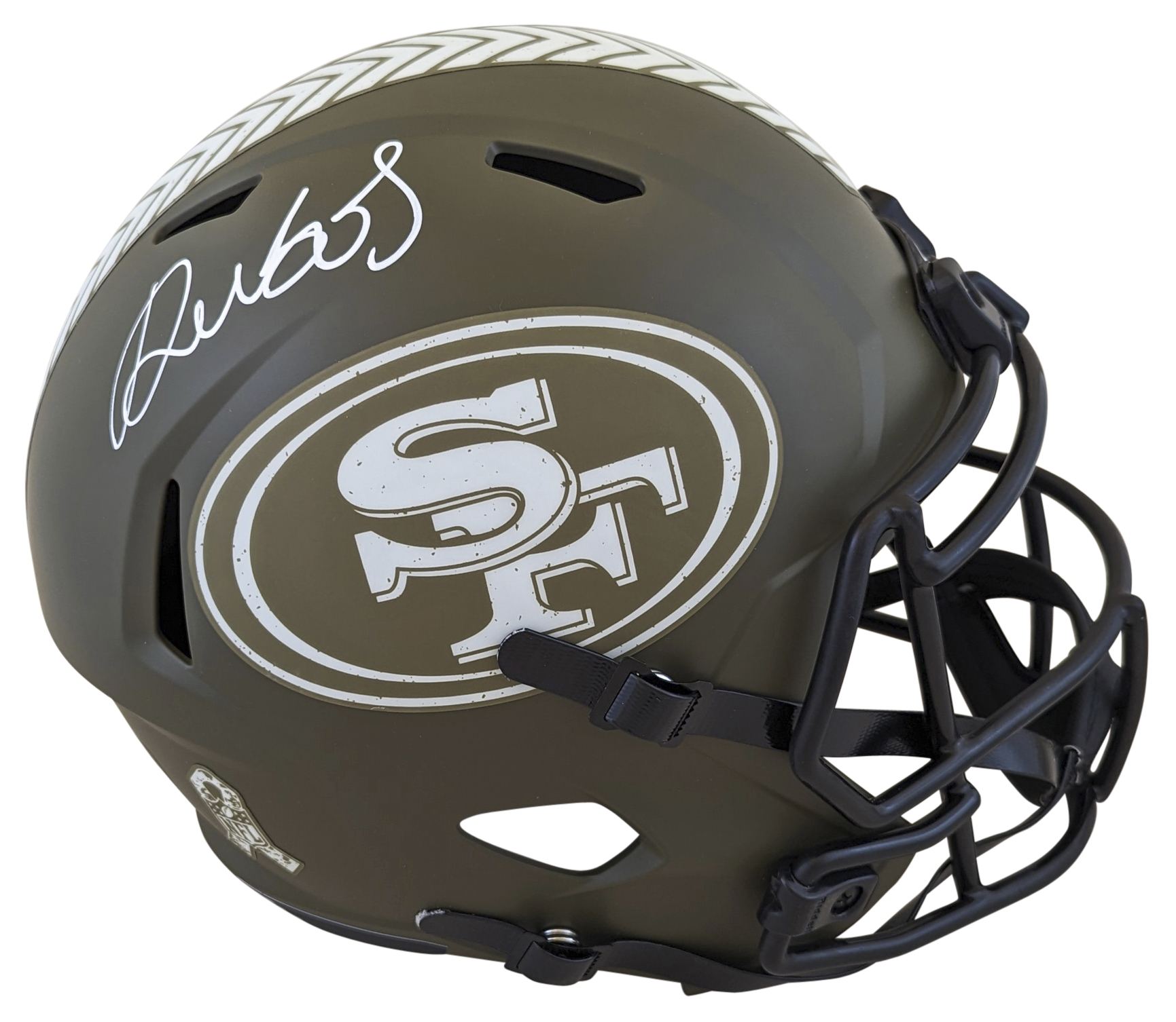 This Autographed Alternate Salute To Service Riddell Full Size Speed Rep Helmet has been Personally Signed by Deebo Samuel of the San Francisco 49ers. This item is 100% Authentic to includes a numbered hologram by Fanatics. We conducted an autograph signing with Deebo Samuel where multiples of the same item were signed. While the photographs are representative of this item, the size, placement and strength of the signature may vary. Each item is hand signed, therefore, each autograph is unique. This item can be verified through Fanatics.