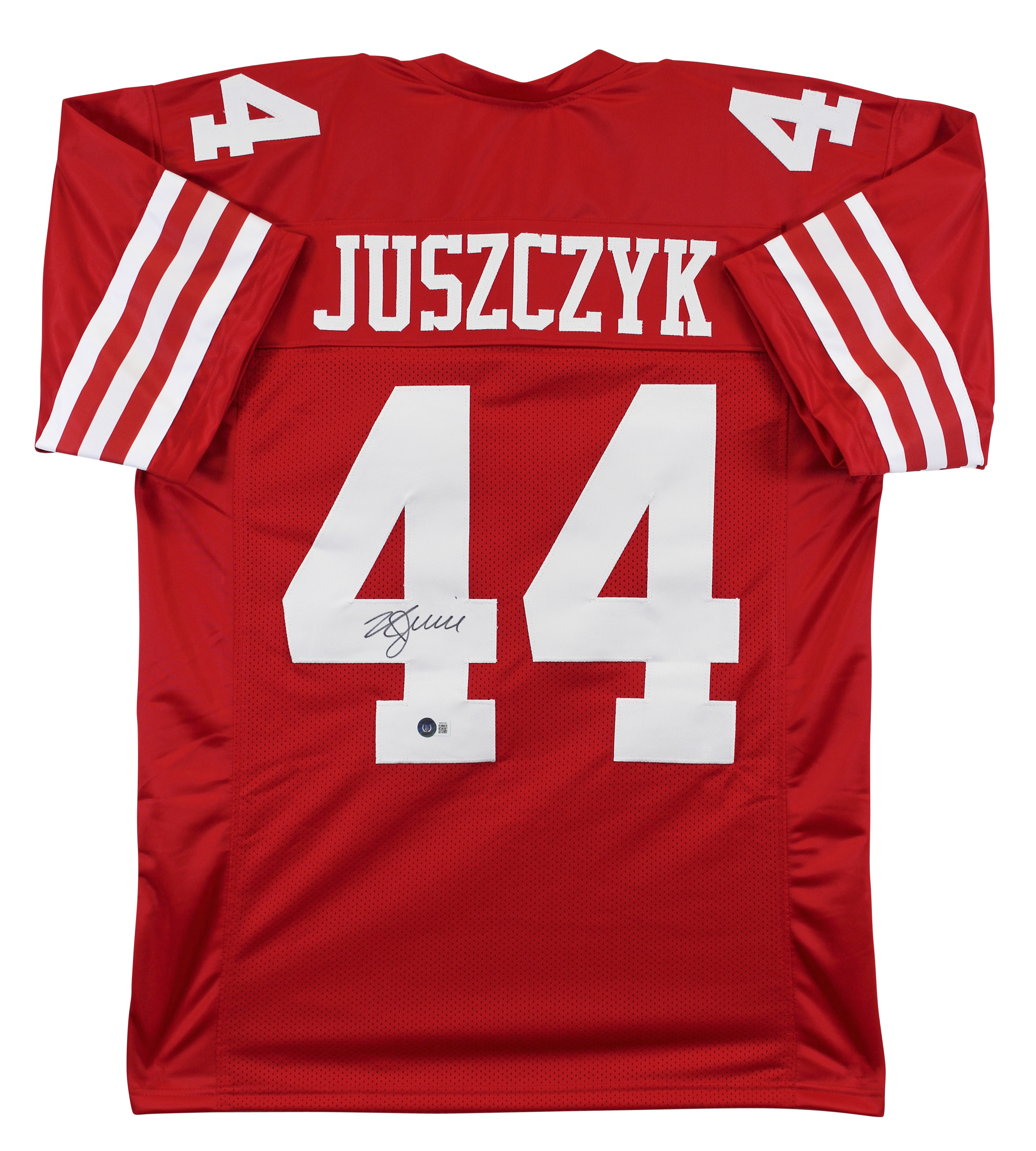 This Autographed Red Pro Style Jersey has been Personally Signed by Kyle Juszczyk of the San Francisco 49ers. This item is 100% Authentic to include a hologram by Beckett Authentication Services. This item may come with the new Beckett Authentication hologram that has a scannable QR code rather than the traditional COA. If you would like to have a COA, you are welcome to reach out to Beckett for a printed certification once you receive your item. This is a BAS Witnessed Protection Program item which means a Beckett Authentication Service representative was present when this item was being signed. We have multiples of this same item. While the photographs are representative of this item, the size, placement and strength of the signature may vary. Each item is hand signed, therefore, each autograph is unique. This is a X-Large sized, non-branded, custom-stitched Jersey.