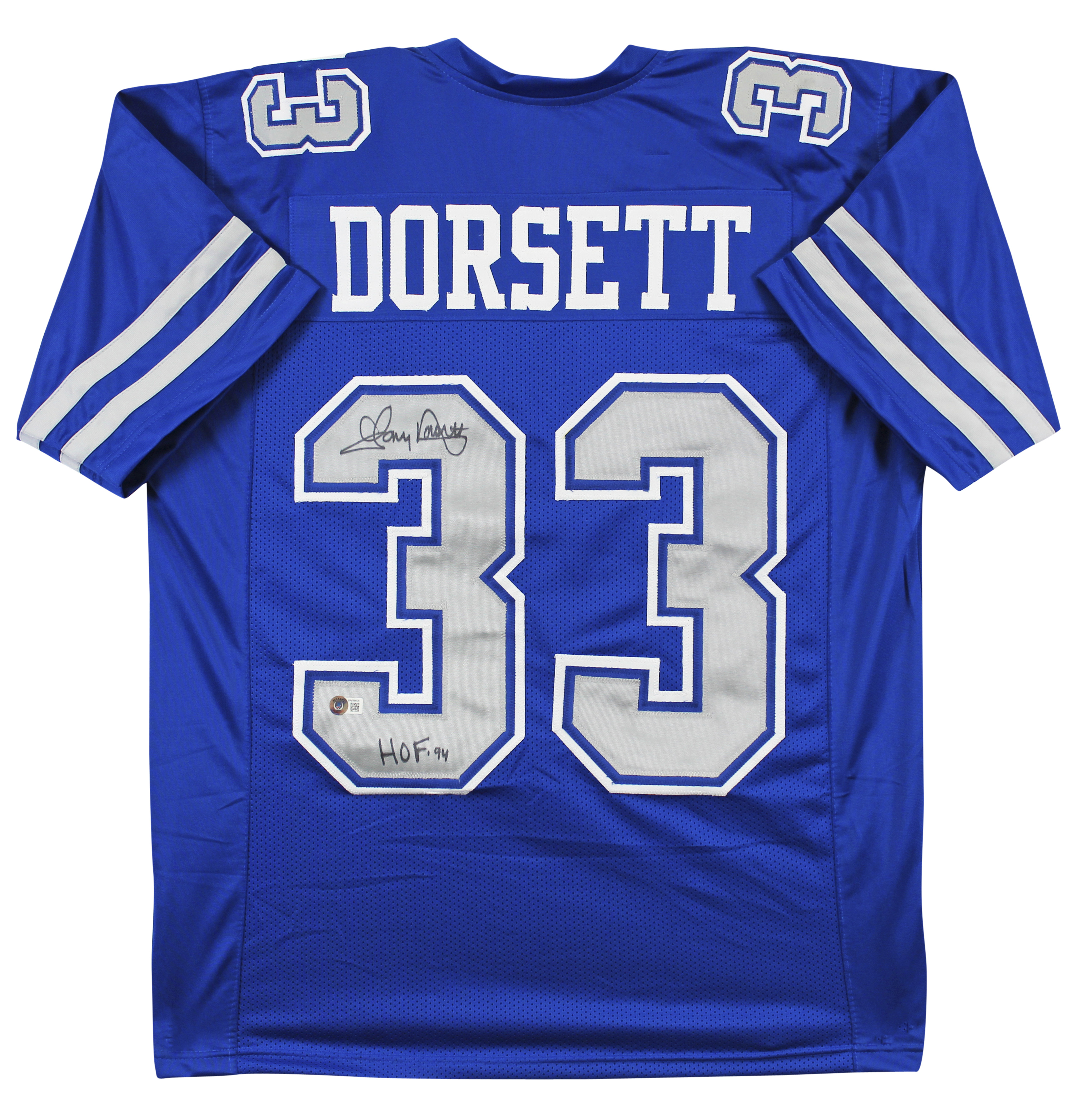 Tony Dorsett "HOF 94" Authentic Signed Blue Throwback Pro Style Jersey BAS Wit