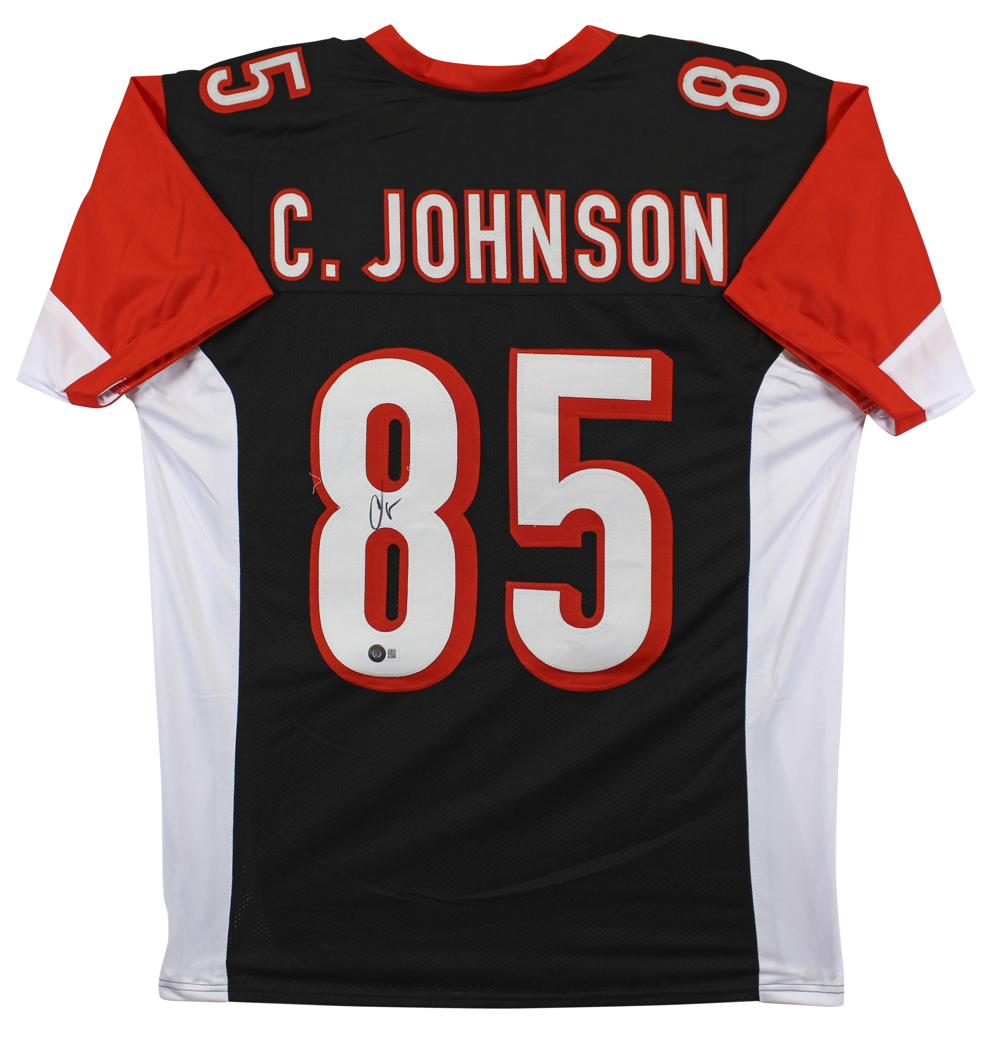 This Autographed Black Pro Style Jersey has been Personally Signed by Chad Johnson of the Cincinnati Bengals. This item is 100% Authentic to include a hologram by Beckett Authentication Services. This item will come with an affixed Beckett Authentication Services (BAS) authentication sticker, which includes a scannable QR code to verify authenticity. Please note that Beckett no longer provides serial-numbered COA cards, and the attached BAS sticker will serve as the complete authentication for this item. This is a BAS Witnessed Protection Program item which means a Beckett Authentication Service representative was present when this item was being signed. We conducted an autograph signing with Chad Johnson where multiples of the same item were signed. While the photographs are representative of this item, the size, placement and strength of the signature may vary. Each item is hand signed, therefore, each autograph is unique. This item can be verified through BAS Witnessed. This is a X-Large sized, non-branded, custom-stitched Jersey.