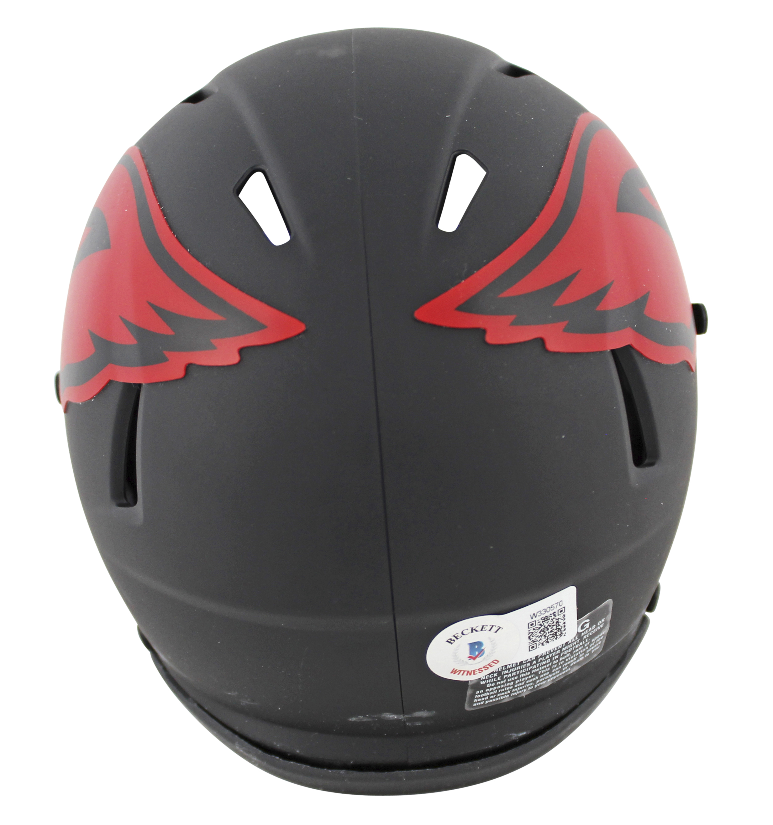 This Autographed Alternate Eclipse Speed Mini Helmet has been Personally Signed by J.J. Watt of the Arizona Cardinals. This item is 100% Authentic to include a hologram by Beckett Authentication Services. This item will come with an affixed Beckett Authentication Services (BAS) authentication sticker, which includes a scannable QR code to verify authenticity. Please note that Beckett no longer provides serial-numbered COA cards, and the attached BAS sticker will serve as the complete authentication for this item. This is a BAS Witnessed Protection Program item which means a Beckett Authentication Service representative was present when this item was being signed. We conducted an autograph signing with J.J. Watt where multiples of the same item were signed. While the photographs are representative of this item, the size, placement and strength of the signature may vary. Each item is hand signed, therefore, each autograph is unique. This item can be verified through BAS Witnessed.