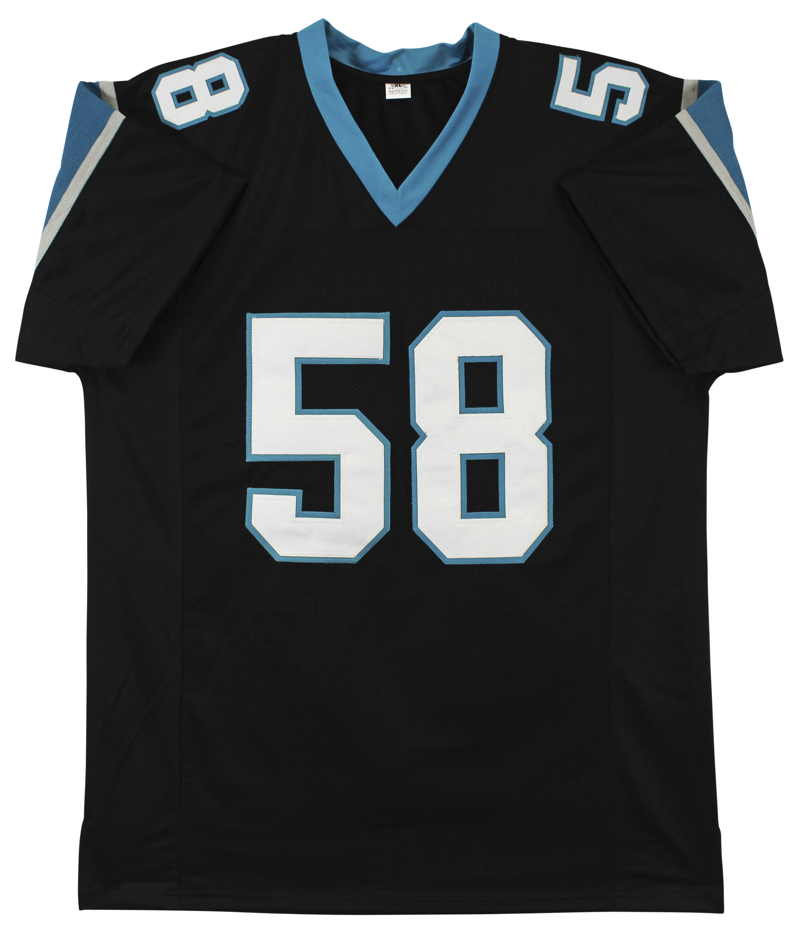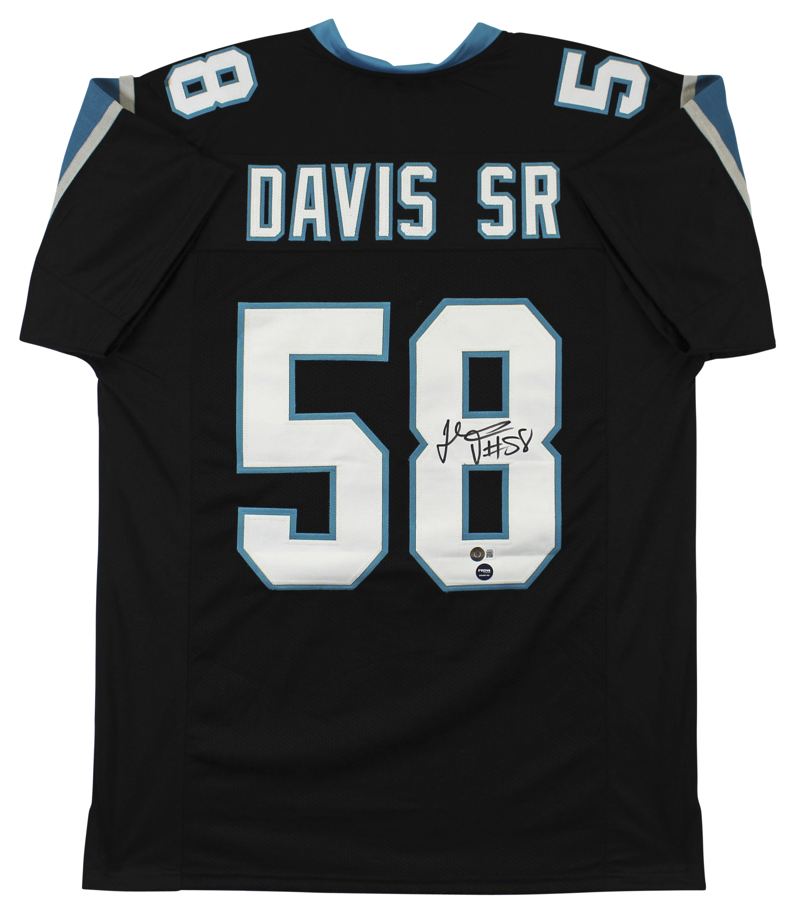 This Autographed Black Pro Style Jersey has been Personally Signed by Thomas Davis of the Carolina Panthers. This item is 100% Authentic to include a hologram by Beckett Authentication Services. This item will come with an affixed Beckett Authentication Services (BAS) authentication sticker, which includes a scannable QR code to verify authenticity. Please note that Beckett no longer provides serial-numbered COA cards, and the attached BAS sticker will serve as the complete authentication for this item. This is a BAS Witnessed Protection Program item which means a Beckett Authentication Service representative was present when this item was being signed. We conducted an autograph signing with Thomas Davis where multiples of the same item were signed. While the photographs are representative of this item, the size, placement and strength of the signature may vary. Each item is hand signed, therefore, each autograph is unique. This item can be verified through BAS Witnessed. This is a X-Large sized, non-branded, custom-stitched Jersey.