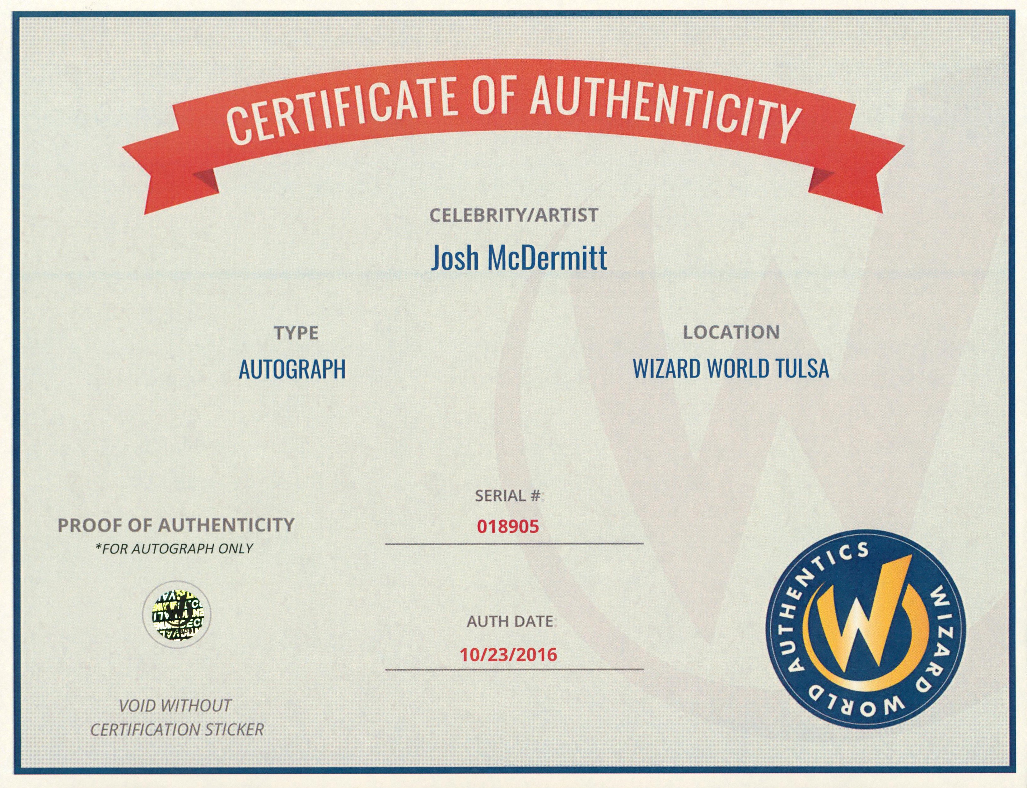 This Autographed 8x10 Photo with the inscription of "Eugene" has been Personally Signed by Josh McDermitt of The Walking Dead. This item is 100% Authentic to include a Certificate of Authenticity (COA) / hologram by Wizard World Authentics. A Wizard World Authentics representative was present when this item was being signed, the date of the signing is notated on the COA. We have multiples of this same item. While the photographs are representative of this item, the size, placement and strength of the signature may vary. Each item is hand signed, therefore, each autograph is unique.