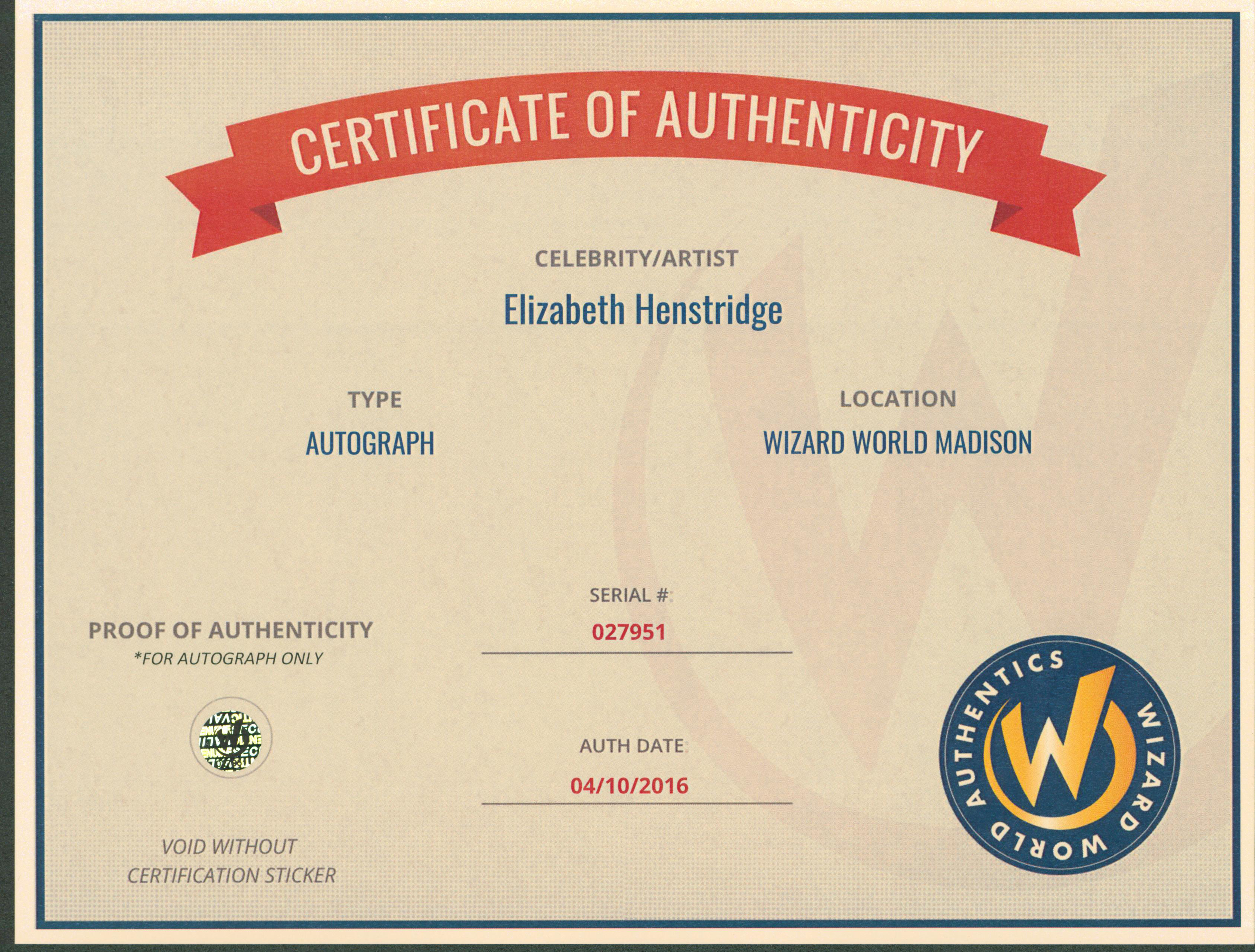 This Autographed 8x10 Photo has been Personally Signed by Elizabeth Henstridge of Marvel's Agents of SHIELD. This item is 100% Authentic to include a Certificate of Authenticity (COA) / hologram by Wizard World Authentics. A Wizard World Authentics representative was present when this item was being signed, the date of the signing is notated on the COA. We have multiples of this same item. While the photographs are representative of this item, the size, placement and strength of the signature may vary. Each item is hand signed, therefore, each autograph is unique.