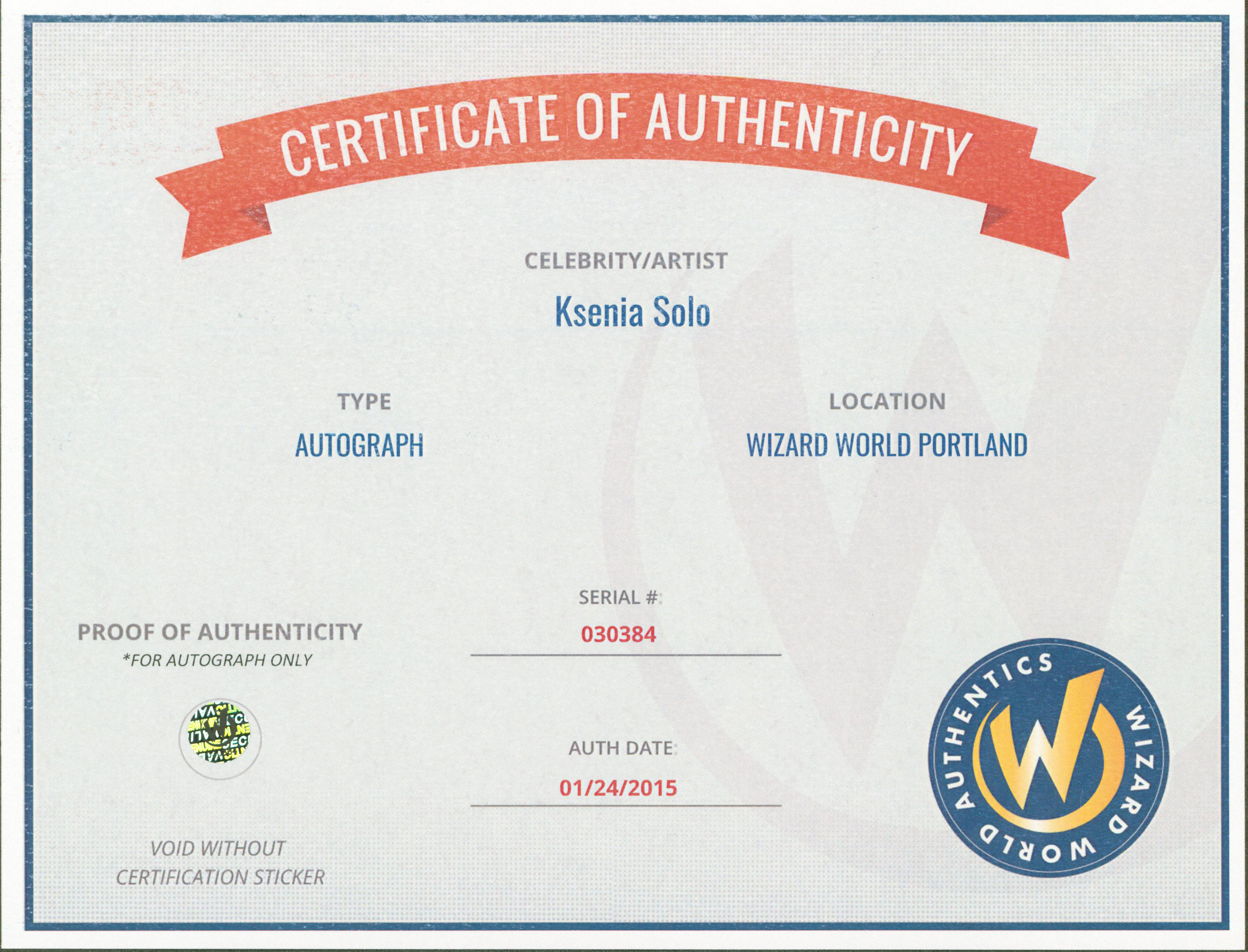 This Autographed 8x10 Photo has been Personally Signed by Ksenia Solo of Lost Girl. This item is 100% Authentic to include a Certificate of Authenticity (COA) / hologram by Wizard World Authentics. A Wizard World Authentics representative was present when this item was being signed, the date of the signing is notated on the COA. We have multiples of this same item. While the photographs are representative of this item, the size, placement and strength of the signature may vary. Each item is hand signed, therefore, each autograph is unique.