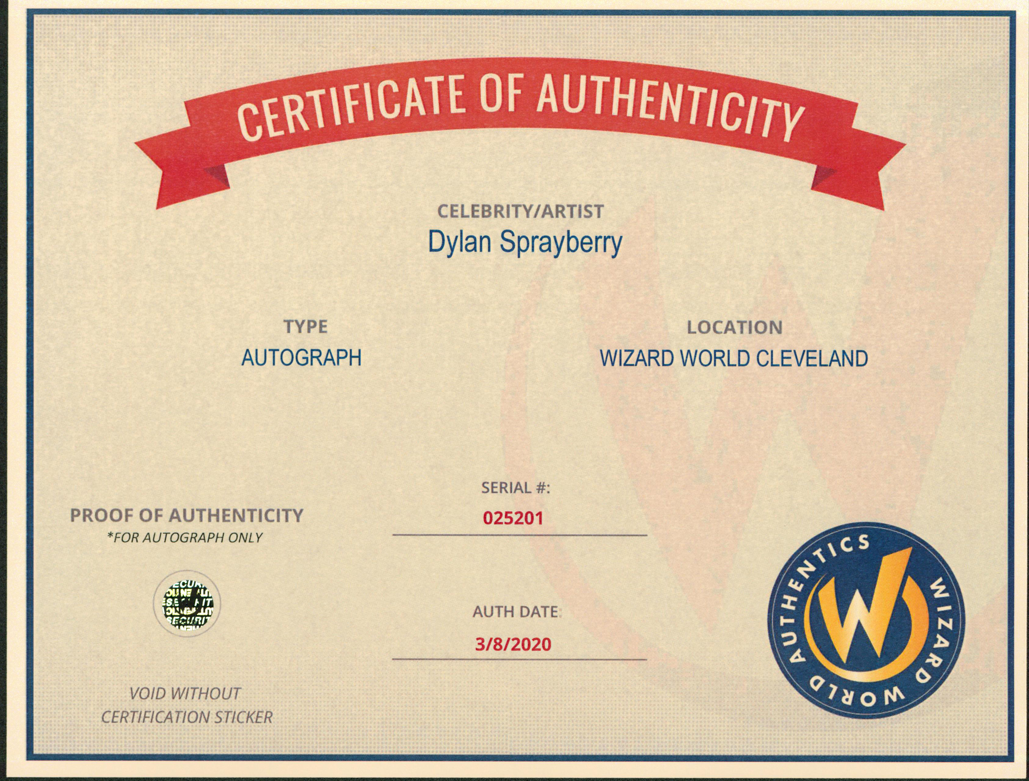 This Autographed 8x10 Photo has been Personally Signed by Dylan Sprayberry of Teen Wolf. This item is 100% Authentic to include a Certificate of Authenticity (COA) / hologram by Wizard World Authentics. A Wizard World Authentics representative was present when this item was being signed, the date of the signing is notated on the COA. We have multiples of this same item. While the photographs are representative of this item, the size, placement and strength of the signature may vary. Each item is hand signed, therefore, each autograph is unique.