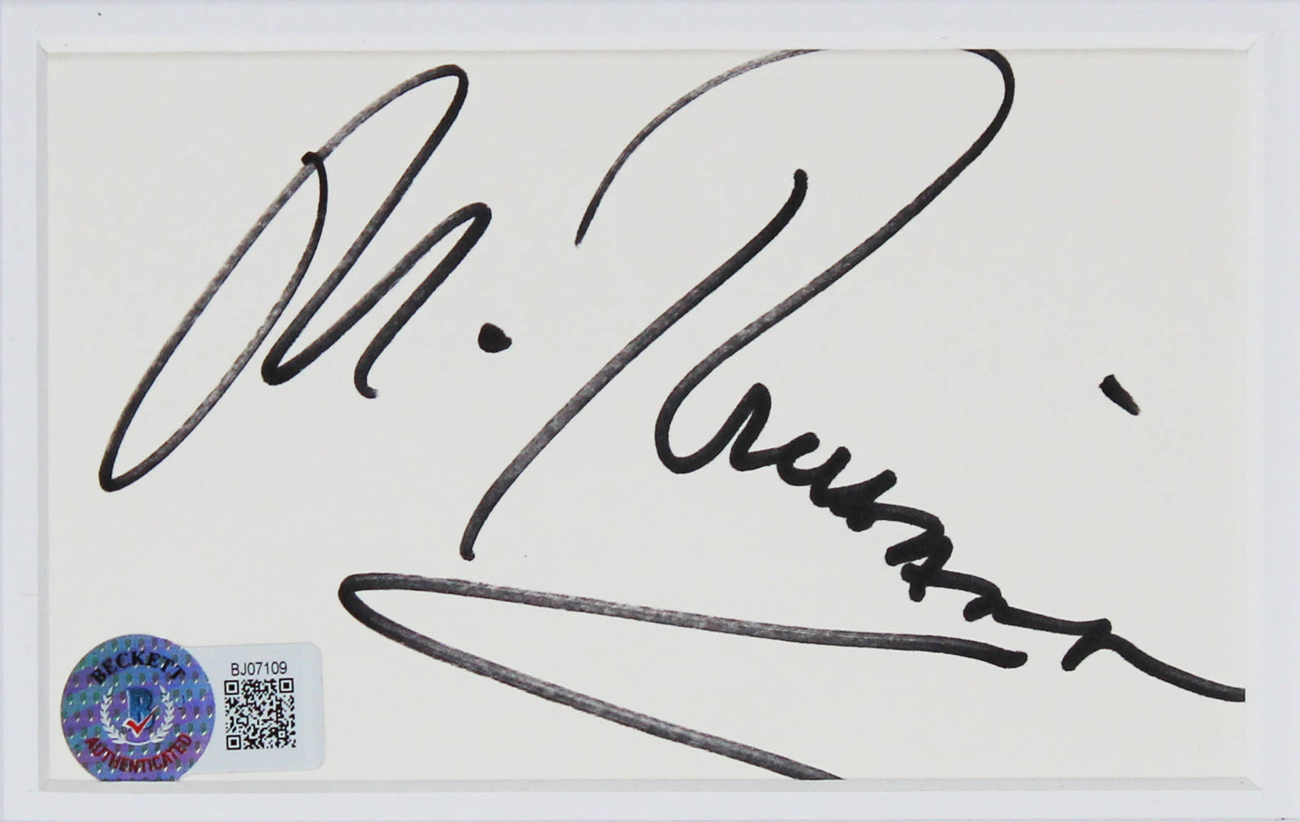 This Autographed & Framed 3x5 Index Card has been Personally Signed by Michael Richards of Seinfeld. This item is 100% Authentic to include a hologram by Beckett Authentication Services. This item will come with an affixed Beckett Authentication Services (BAS) authentication sticker, which includes a scannable QR code to verify authenticity. Please note that Beckett no longer provides serial-numbered COA cards, and the attached BAS sticker will serve as the complete authentication for this item. The authenticity can be verified on Beckett Authentication Services website. This item has been professionally framed to overall dimensions of approximately 23.75 x 26.75 inches.