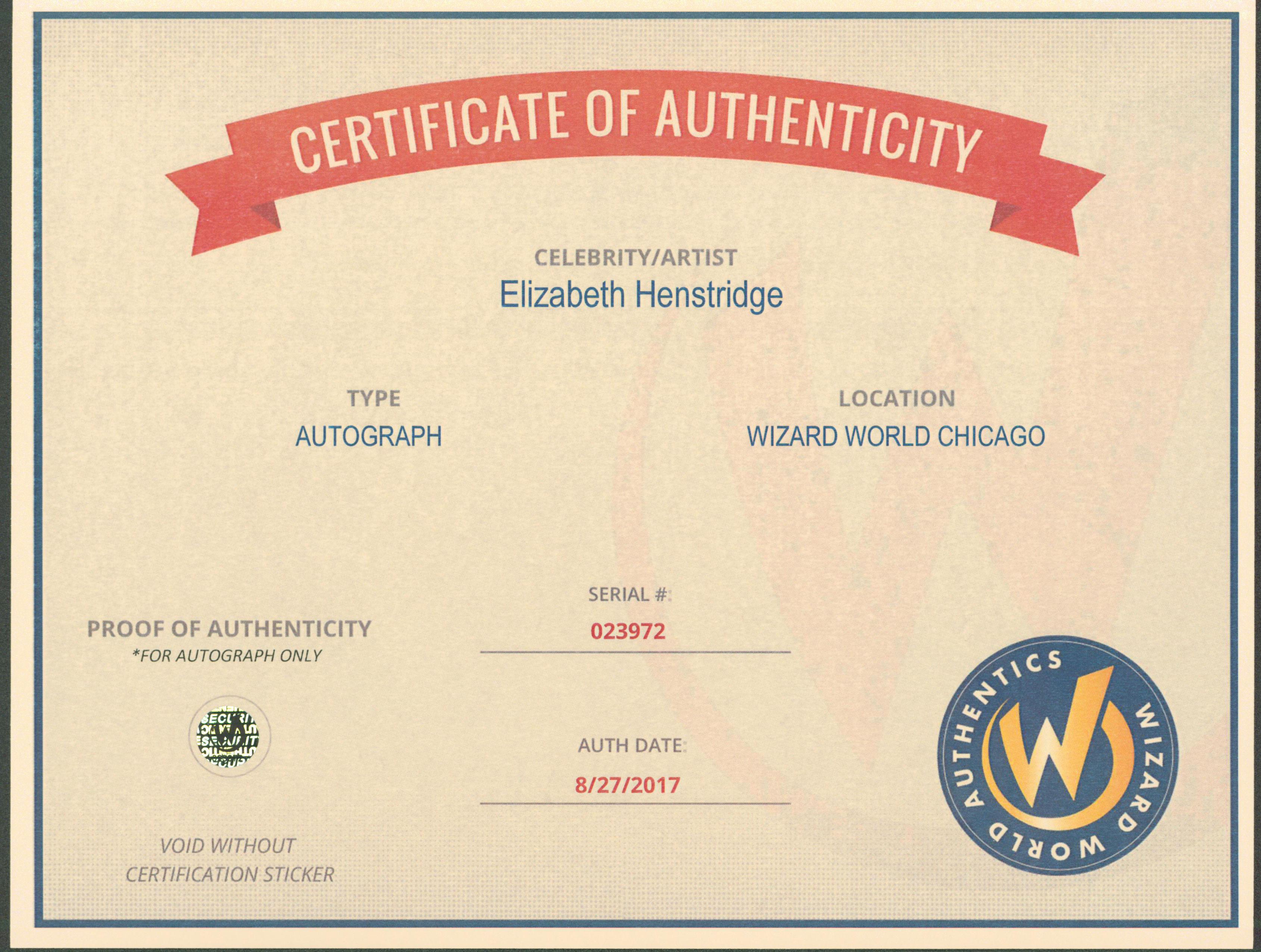 This Autographed 8x10 Photo has been Personally Signed by Elizabeth Henstridge of Marvel's Agents of SHIELD. This item is 100% Authentic to include a Certificate of Authenticity (COA) / hologram by Wizard World Authentics. A Wizard World Authentics representative was present when this item was being signed, the date of the signing is notated on the COA. The authenticity can be verified on Wizard World Authentics website.