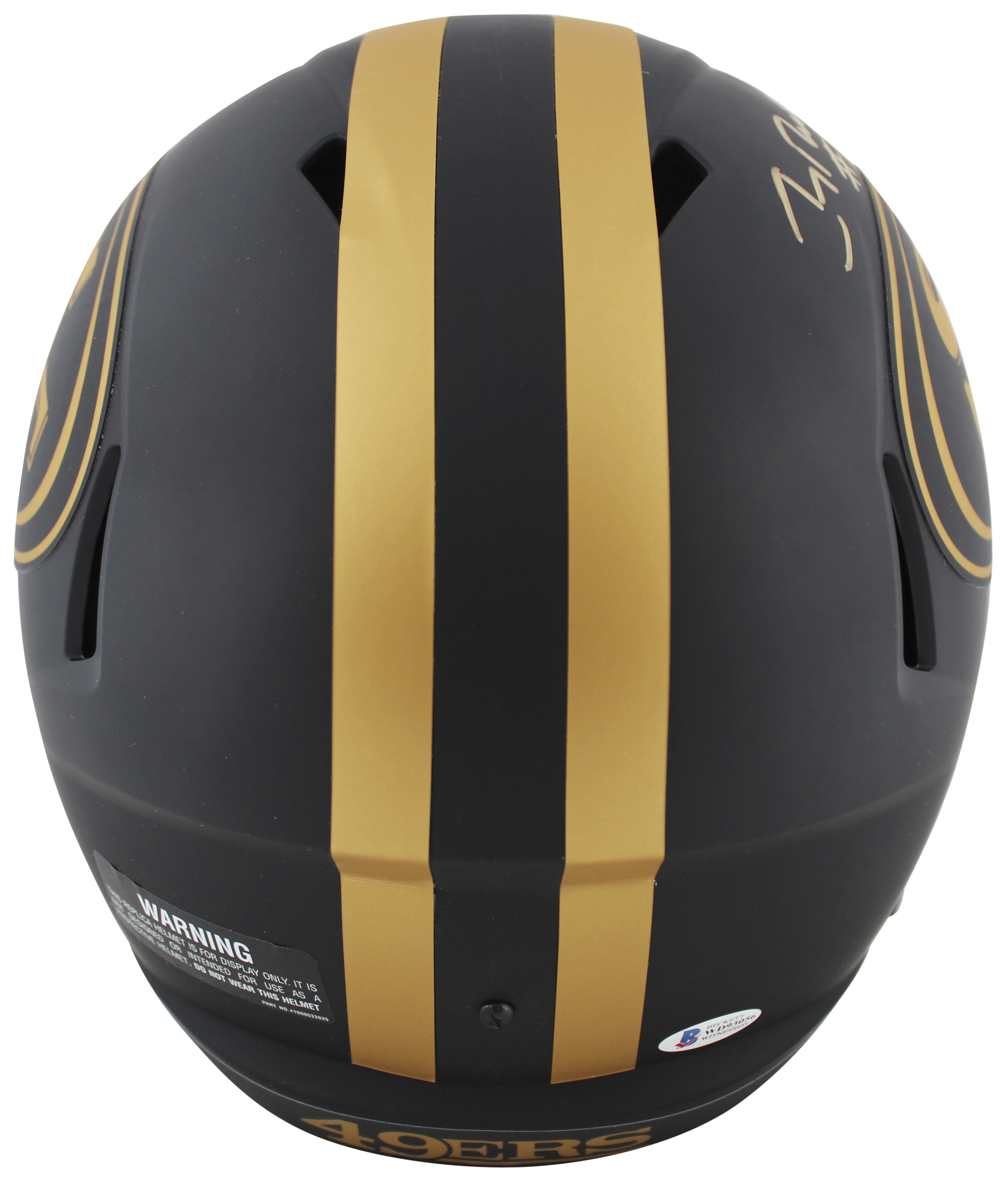 This Autographed Alternate Eclipse Full Size Speed Rep Helmet has been Personally Signed by Joe Montana & Jerry Rice of the San Francisco 49ers. This item is 100% Authentic to include a Certificate of Authenticity (COA) / hologram by JSA. We have multiples of this same item. While the photographs are representative of this item, the size, placement and strength of the signature may vary. Each item is hand signed, therefore, each autograph is unique.