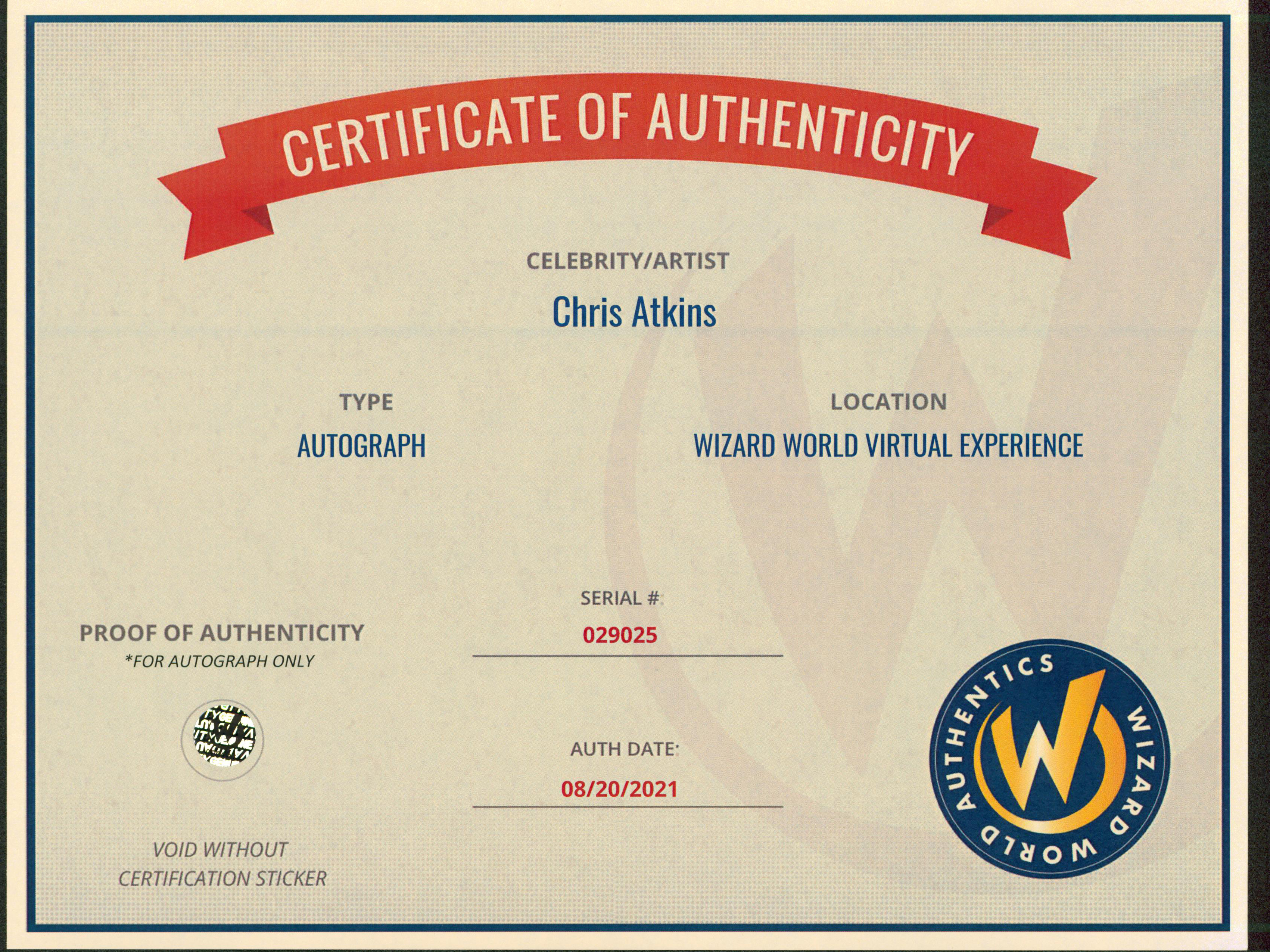 This Autographed 8x10 Photo with the inscription of "Without a 'K'!" has been Personally Signed by Chris Atkins of The Pirate Movie. This item is 100% Authentic to include a Certificate of Authenticity (COA) / hologram by Wizard World Authentics. A Wizard World Authentics representative was present when this item was being signed, the date of the signing is notated on the COA. The authenticity can be verified on Wizard World Authentics website.