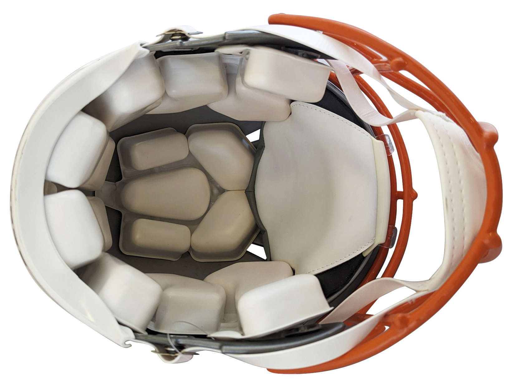 This Autographed Alternate Flash Riddell Authentic Full Size Speed Proline Helmet has been Personally Signed by Tee Higgins of the Cincinnati Bengals. This item is 100% Authentic to include a hologram by Beckett Authentication Services. This item will come with an affixed Beckett Authentication Services (BAS) authentication sticker, which includes a scannable QR code to verify authenticity. Please note that Beckett no longer provides serial-numbered COA cards, and the attached BAS sticker will serve as the complete authentication for this item. This is a BAS Witnessed Protection Program item which means a Beckett Authentication Service representative was present when this item was being signed. We conducted an autograph signing with Tee Higgins where multiples of the same item were signed. While the photographs are representative of this item, the size, placement and strength of the signature may vary. Each item is hand signed, therefore, each autograph is unique. This item can be verified through BAS Witnessed.
