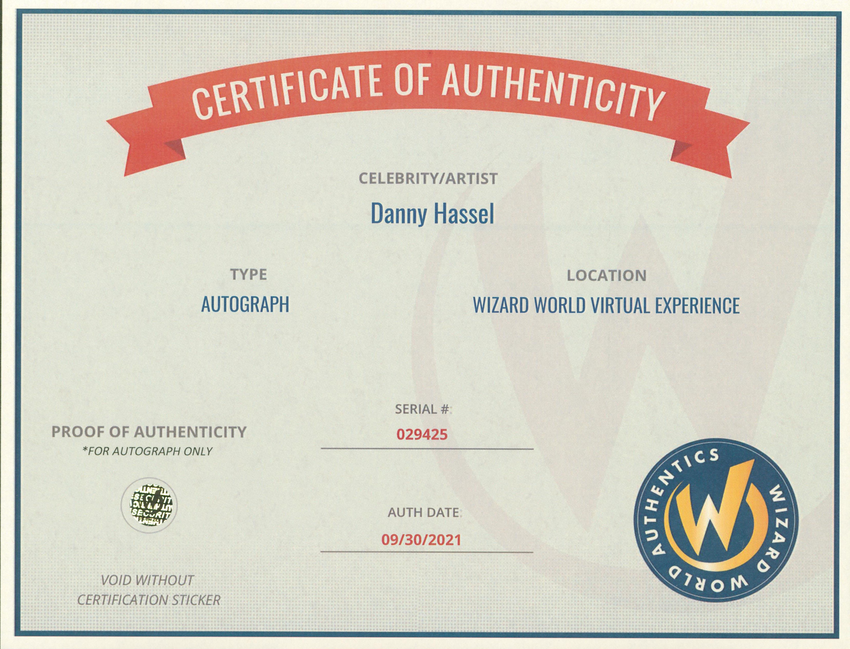 This Autographed 8x10 Photo has been Personally Signed by Danny Hassel of A Nightmare On Elm Street. This item is 100% Authentic to include a Certificate of Authenticity (COA) / hologram by Wizard World Authentics. A Wizard World Authentics representative was present when this item was being signed, the date of the signing is notated on the COA. We have multiples of this same item. While the photographs are representative of this item, the size, placement and strength of the signature may vary. Each item is hand signed, therefore, each autograph is unique.