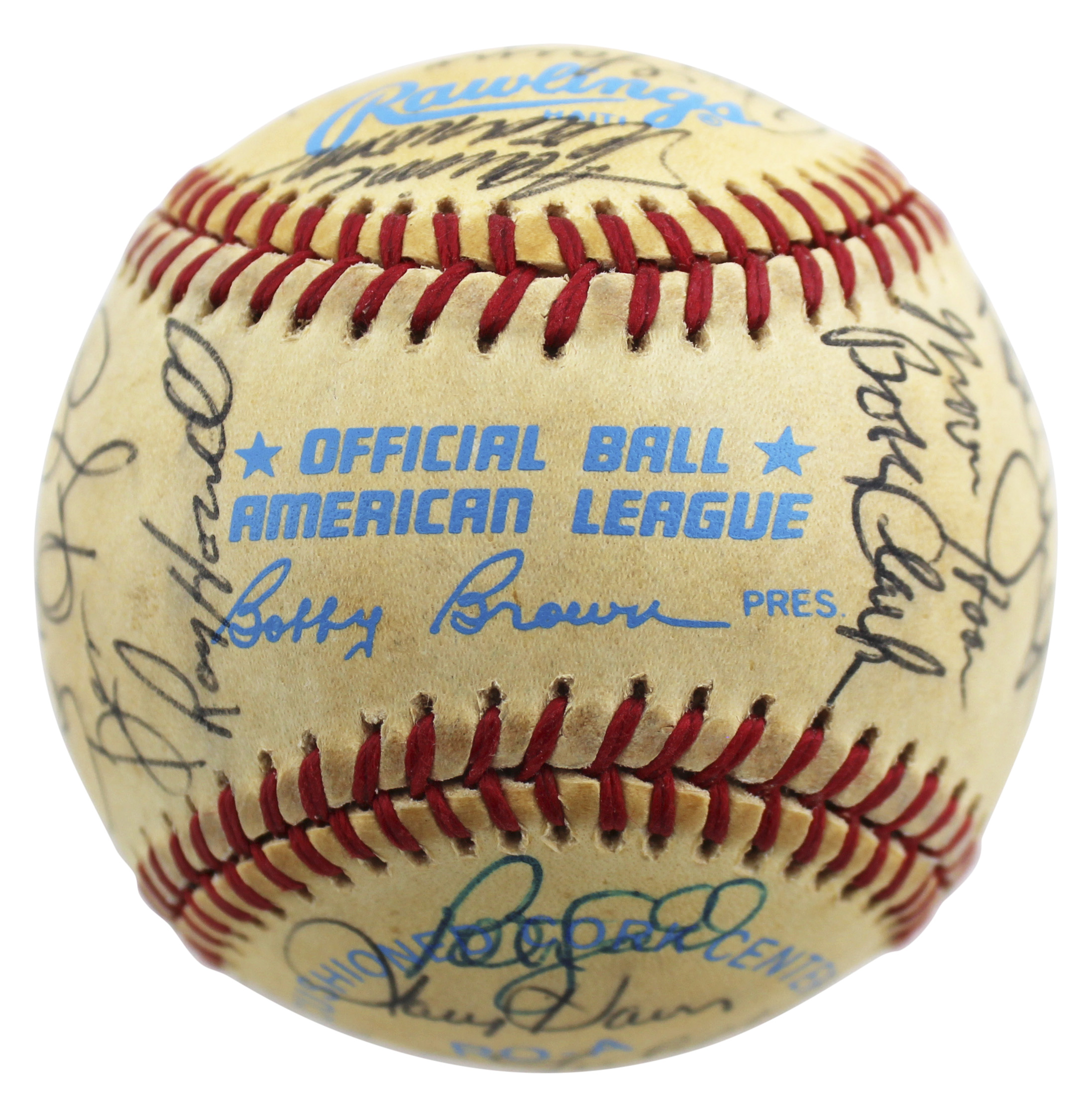 This Autographed Bobby Brown Oal Baseball has been Personally Signed by Notable Signatures Include: Robin Yount, Don Sutton, Ted Simmons, Ben Oglivie, Jim Sundberg of the Milwaukee Brewers. This item is 100% Authentic to include a Certificate of Authenticity (COA) / hologram by Beckett Authentication Services. The authenticity can be verified on Beckett Authentication Services website.