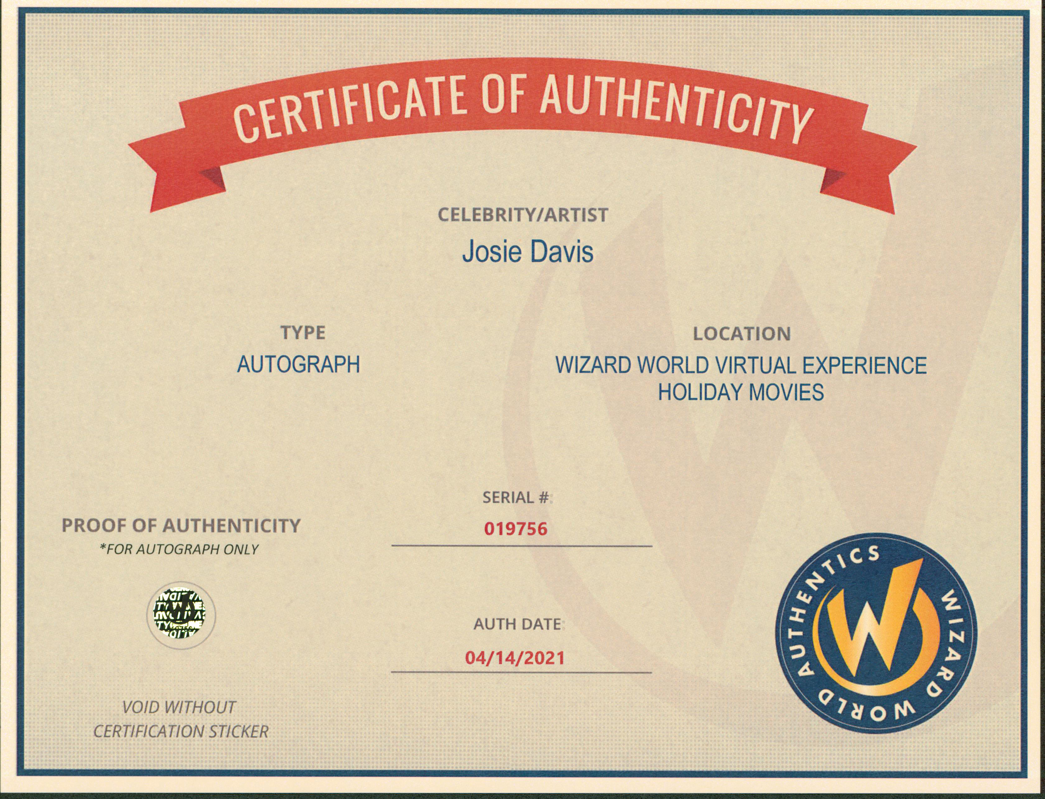 This Autographed 8x10 Photo has been Personally Signed by Josie Davis of Charles in Charge. This item is 100% Authentic to include a Certificate of Authenticity (COA) / hologram by Wizard World Authentics. A Wizard World Authentics representative was present when this item was being signed, the date of the signing is notated on the COA. We have multiples of this same item. While the photographs are representative of this item, the size, placement and strength of the signature may vary. Each item is hand signed, therefore, each autograph is unique.
