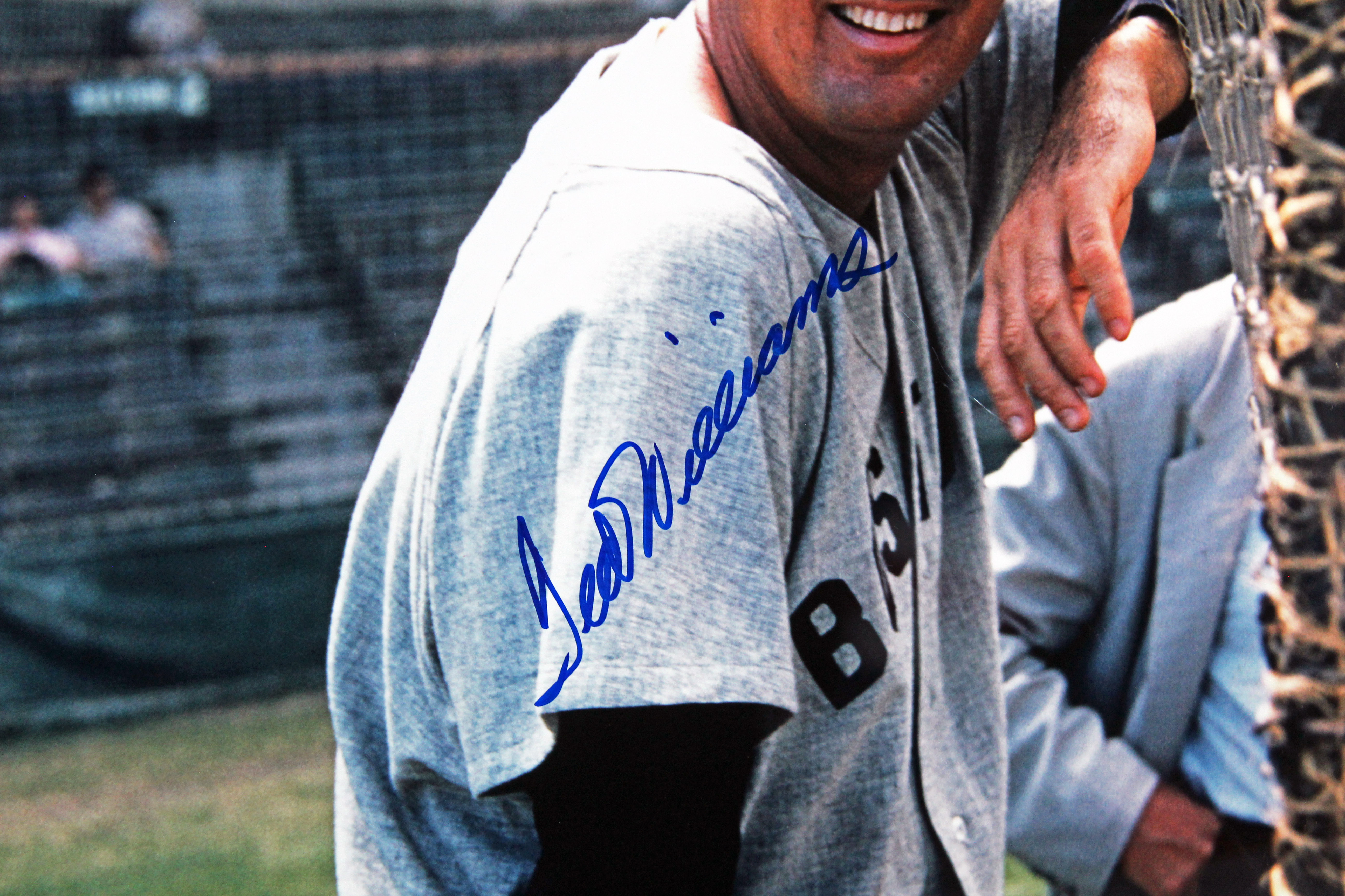 This Autographed 16x20 Framed Photo has been Personally Signed by Ted Williams of the Boston Red Sox. This item is 100% Authentic and comes with a PSA/DNA Certification Card and a matching numbered Hologram. The authenticity can be verified on Professional Sports Authenticator website. This item has been professionally framed to overall dimensions of approximately 22.5 x 26.5 inches.