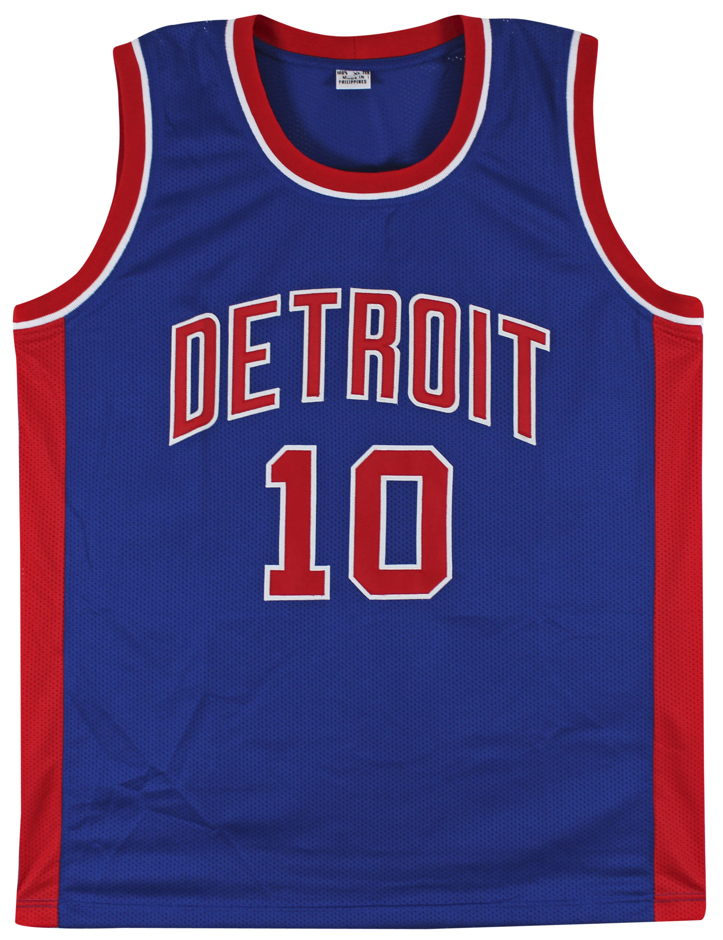 This Autographed Blue Pro Style Jersey has been Personally Signed by Dennis Rodman of the Detroit Pistons. This item is 100% Authentic to include a hologram by Beckett Authentication Services. This item will come with an affixed Beckett Authentication Services (BAS) authentication sticker, which includes a scannable QR code to verify authenticity. Please note that Beckett no longer provides serial-numbered COA cards, and the attached BAS sticker will serve as the complete authentication for this item. This is a BAS Witnessed Protection Program item which means a Beckett Authentication Service representative was present when this item was being signed. We conducted an autograph signing with Dennis Rodman where multiples of the same item were signed. While the photographs are representative of this item, the size, placement and strength of the signature may vary. Each item is hand signed, therefore, each autograph is unique. This item can be verified through BAS Witnessed. This is a X-Large sized, non-branded, custom-stitched Jersey.