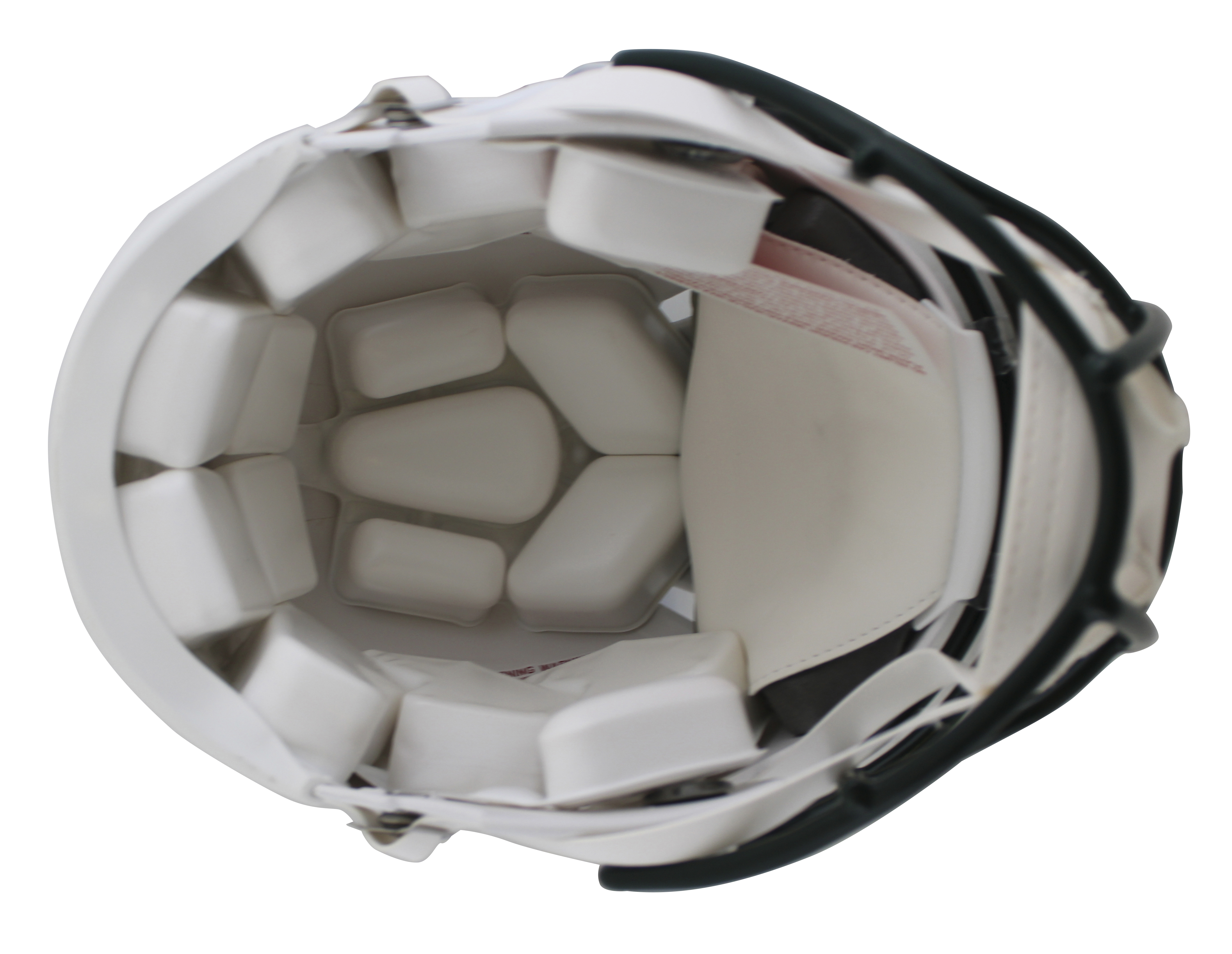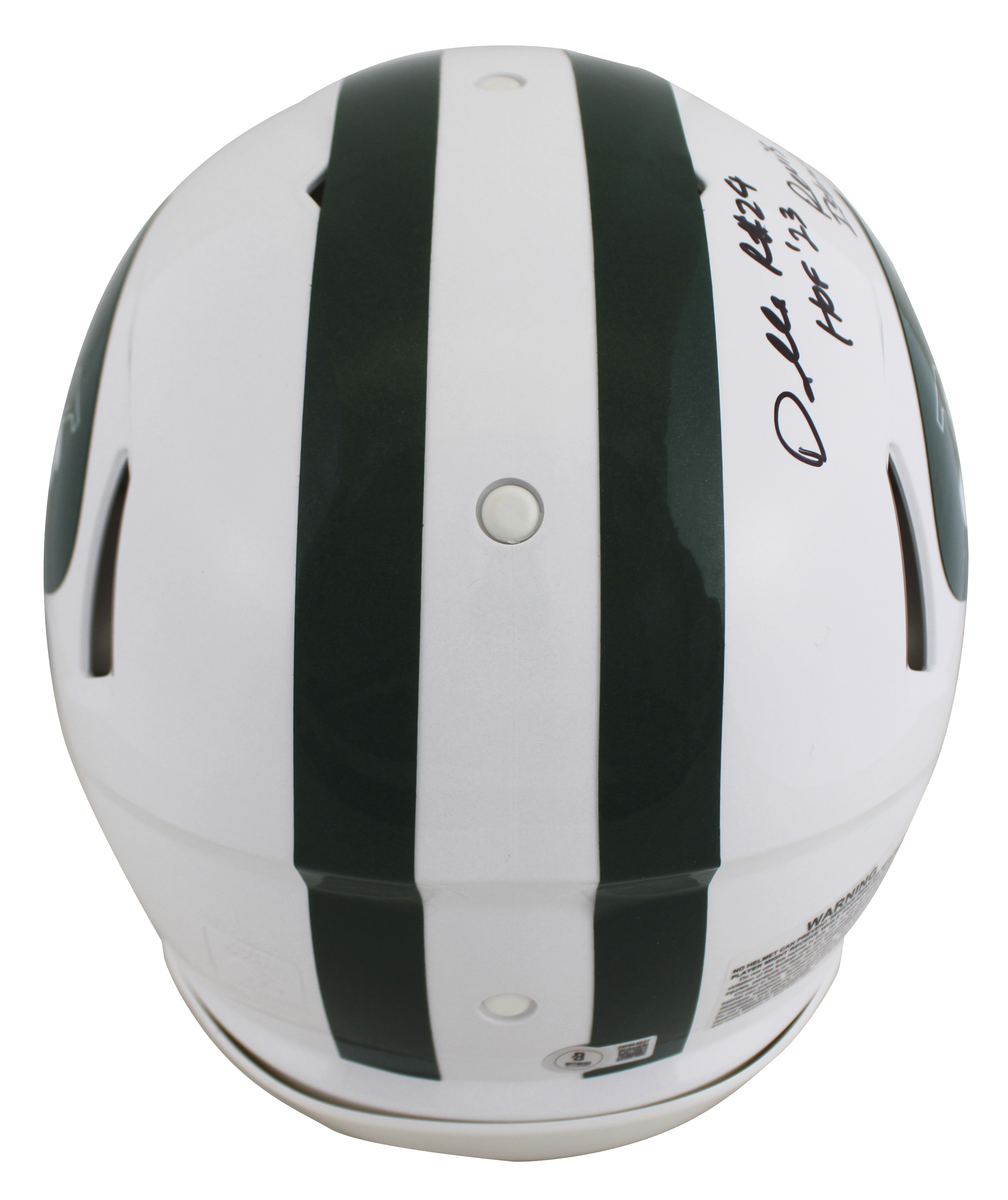 This Autographed 1998-18 Throwback Authentic Full Size Proline Helmet with the inscription of "Revis Island, HOF 2023" has been Personally Signed by Darrelle Revis of the New York Jets. This item is 100% Authentic to include a hologram by Beckett Authentication Services. This item will come with an affixed Beckett Authentication Services (BAS) authentication sticker, which includes a scannable QR code to verify authenticity. Please note that Beckett no longer provides serial-numbered COA cards, and the attached BAS sticker will serve as the complete authentication for this item. This is a BAS Witnessed Protection Program item which means a Beckett Authentication Service representative was present when this item was being signed. We conducted an autograph signing with Darrelle Revis where multiples of the same item were signed. While the photographs are representative of this item, the size, placement and strength of the signature may vary. Each item is hand signed, therefore, each autograph is unique. This item can be verified through BAS Witnessed.
