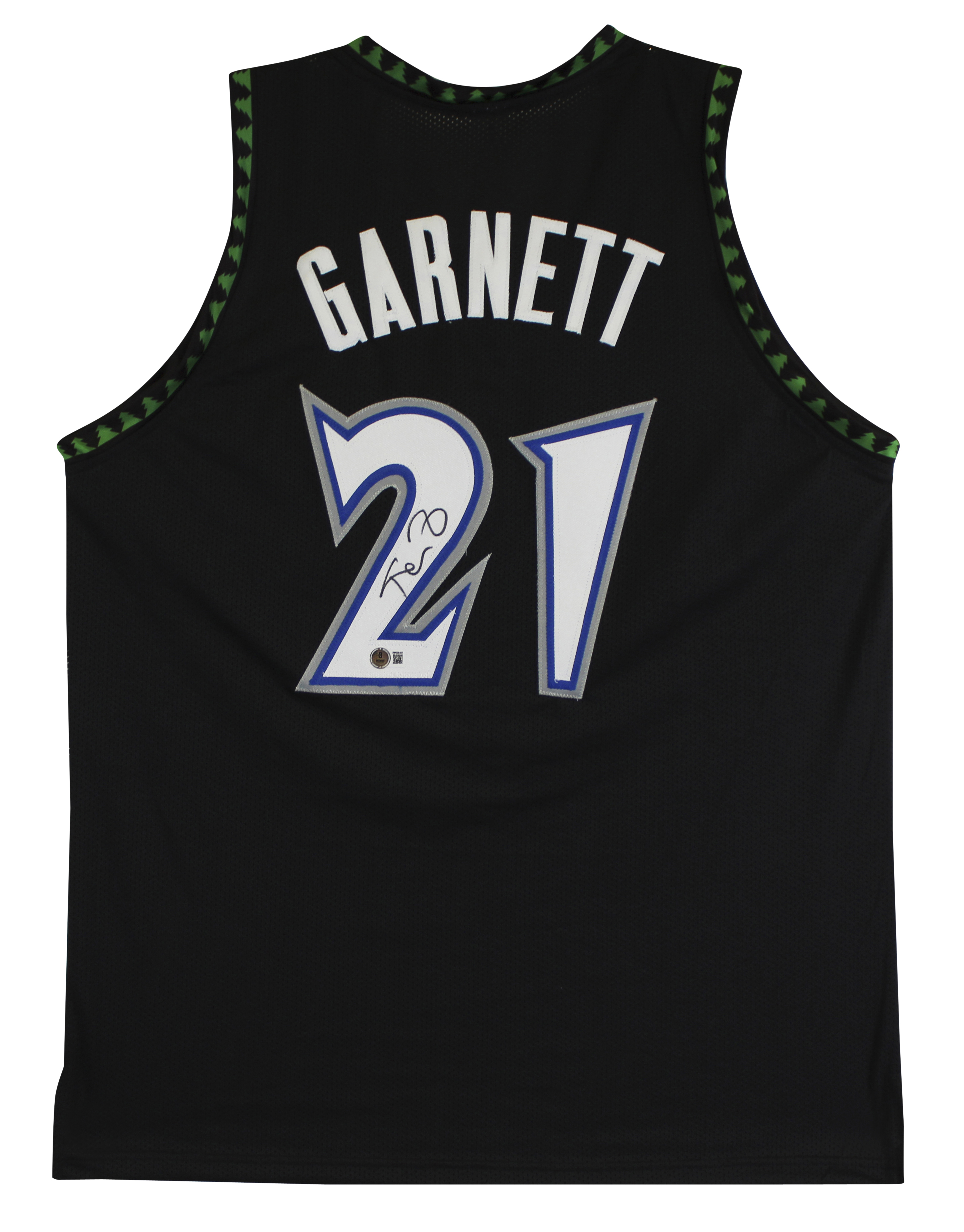 This Autographed Black Pro Style Jersey has been Personally Signed by Kevin Garnett of the Minnesota Timberwolves. This item is 100% Authentic to include a hologram by Beckett Authentication Services. This item will come with an affixed Beckett Authentication Services (BAS) authentication sticker, which includes a scannable QR code to verify authenticity. Please note that Beckett no longer provides serial-numbered COA cards, and the attached BAS sticker will serve as the complete authentication for this item. This is a BAS Witnessed Protection Program item which means a Beckett Authentication Service representative was present when this item was being signed. We conducted an autograph signing with Kevin Garnett where multiples of the same item were signed. While the photographs are representative of this item, the size, placement and strength of the signature may vary. Each item is hand signed, therefore, each autograph is unique. This item can be verified through BAS Witnessed. This is a X-Large sized, non-branded, custom-stitched Jersey.