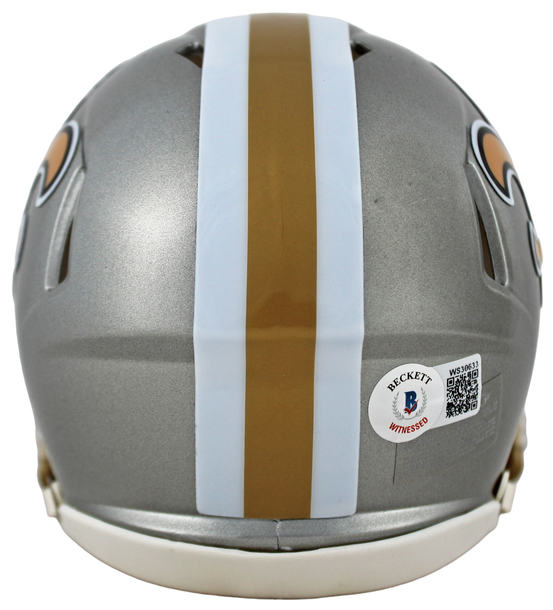 This Autographed Alternate Flash Speed Mini Helmet has been Personally Signed by Drew Brees of the New Orleans Saints. This item is 100% Authentic to include a hologram by Beckett Authentication Services. This item will come with an affixed Beckett Authentication Services (BAS) authentication sticker, which includes a scannable QR code to verify authenticity. Please note that Beckett no longer provides serial-numbered COA cards, and the attached BAS sticker will serve as the complete authentication for this item. This is a BAS Witnessed Protection Program item which means a Beckett Authentication Service representative was present when this item was being signed. We have multiples of this same item. While the photographs are representative of this item, the size, placement and strength of the signature may vary. Each item is hand signed, therefore, each autograph is unique.