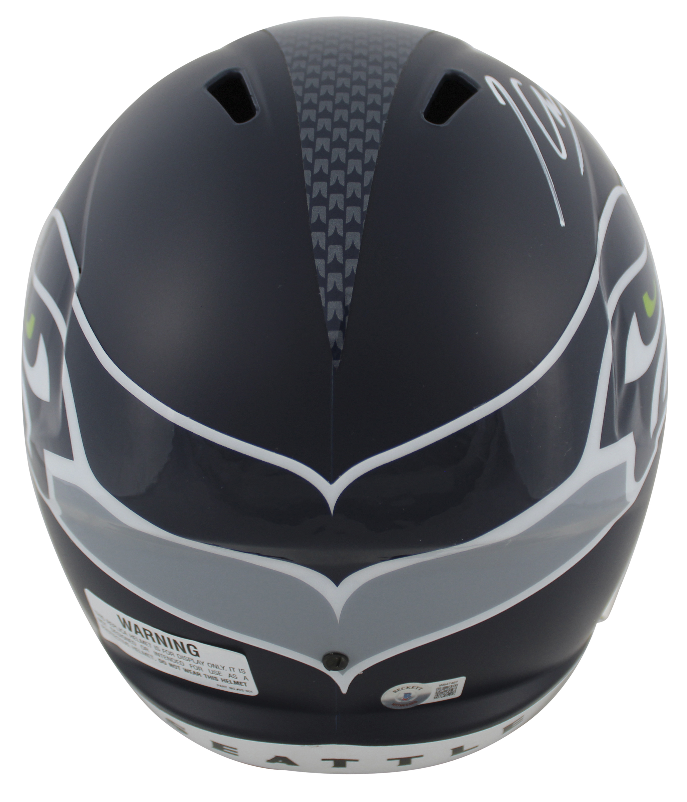 This Autographed Full Size Speed Rep Helmet has been Personally Signed by Kenneth Walker III of the Seattle Seahawks. This item is 100% Authentic to include a hologram by Beckett Authentication Services. This item will come with an affixed Beckett Authentication Services (BAS) authentication sticker, which includes a scannable QR code to verify authenticity. Please note that Beckett no longer provides serial-numbered COA cards, and the attached BAS sticker will serve as the complete authentication for this item. This is a BAS Witnessed Protection Program item which means a Beckett Authentication Service representative was present when this item was being signed. We have multiples of this same item. While the photographs are representative of this item, the size, placement and strength of the signature may vary. Each item is hand signed, therefore, each autograph is unique.